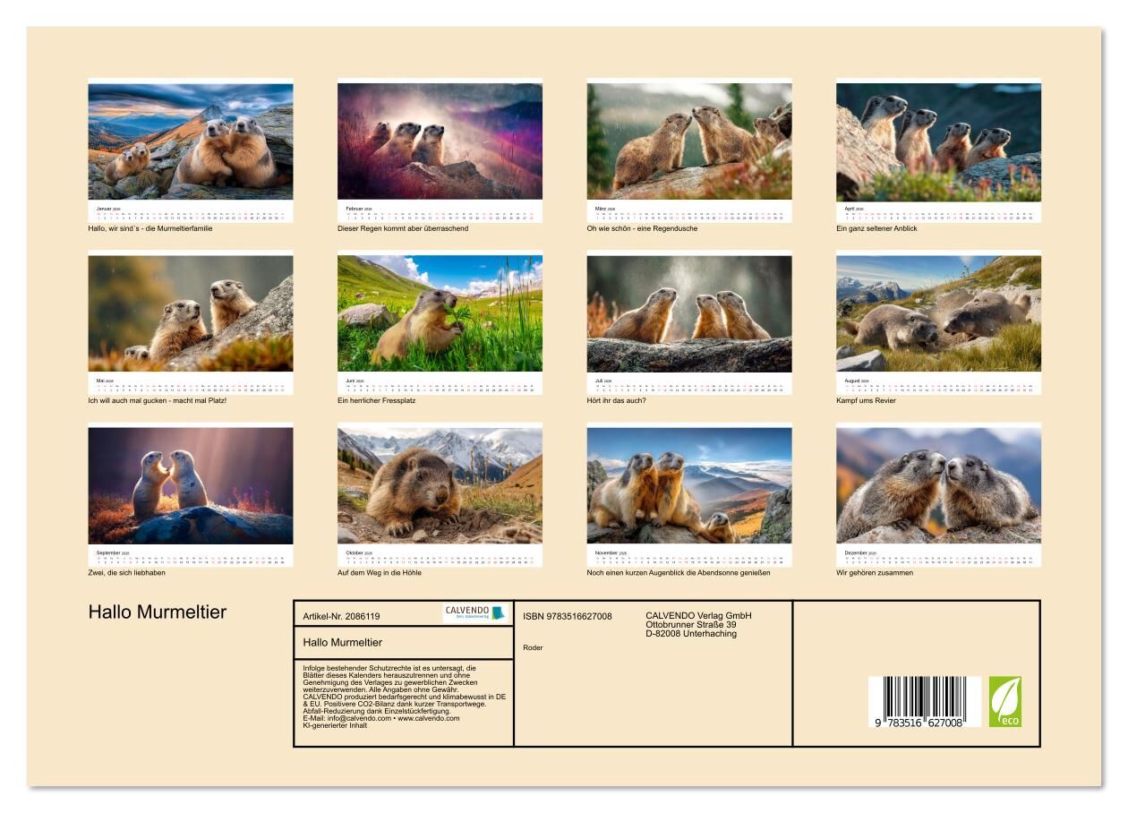 Kommen Sie mit auf eine Reise in die Welt der schüchternen Bergbewohner, die nur selten die Blicke der Wanderer erhaschen: die Murmeltiere. In stimmungsvollen KI-generierten Bildern fängt der Kalender die Magie dieser flinken Tiere ein, die normalerweise Einze...