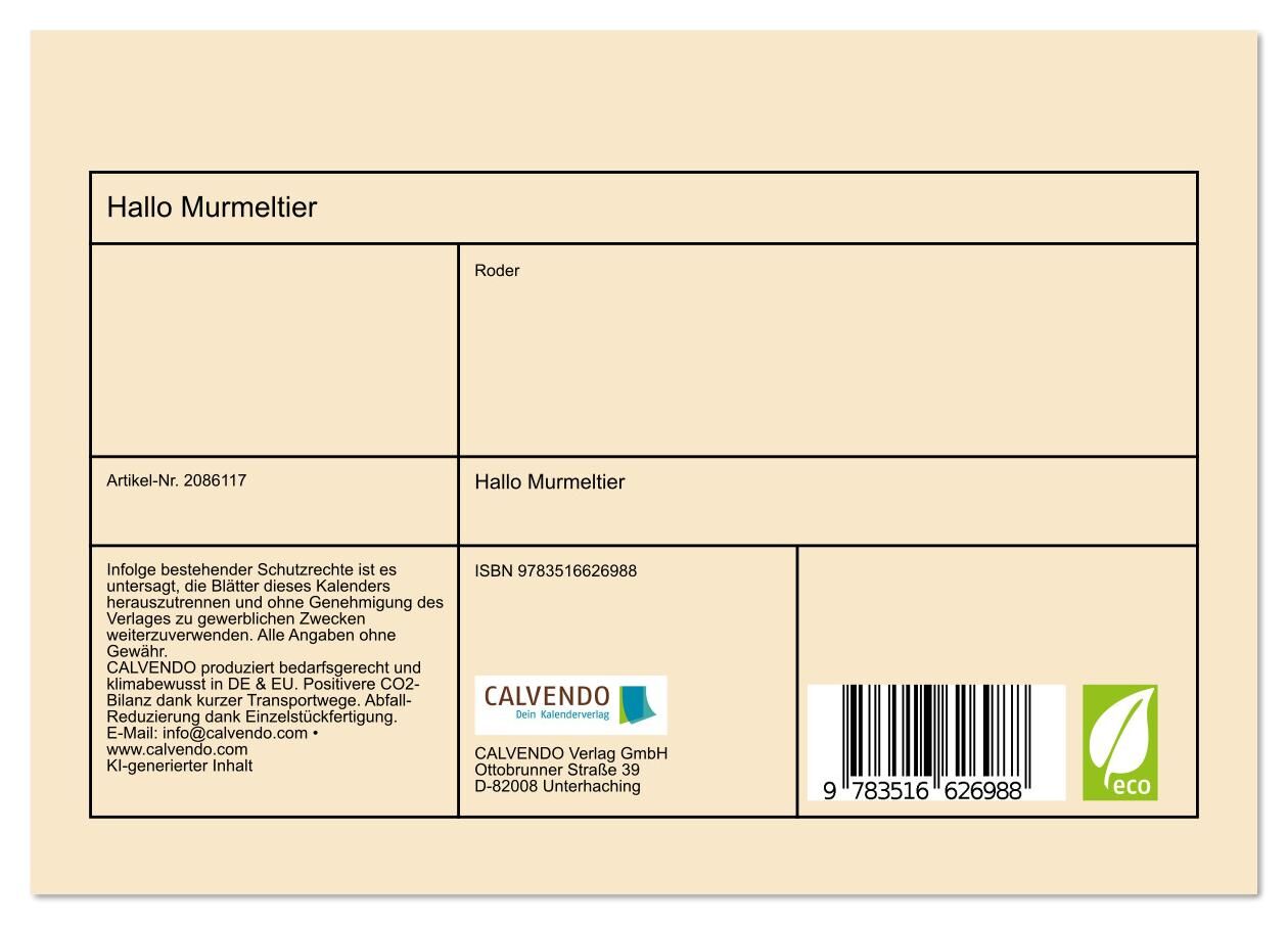 Hallo Murmeltier (Tischkalender 2026 DIN A5 quer), CALVENDO Monatskalender