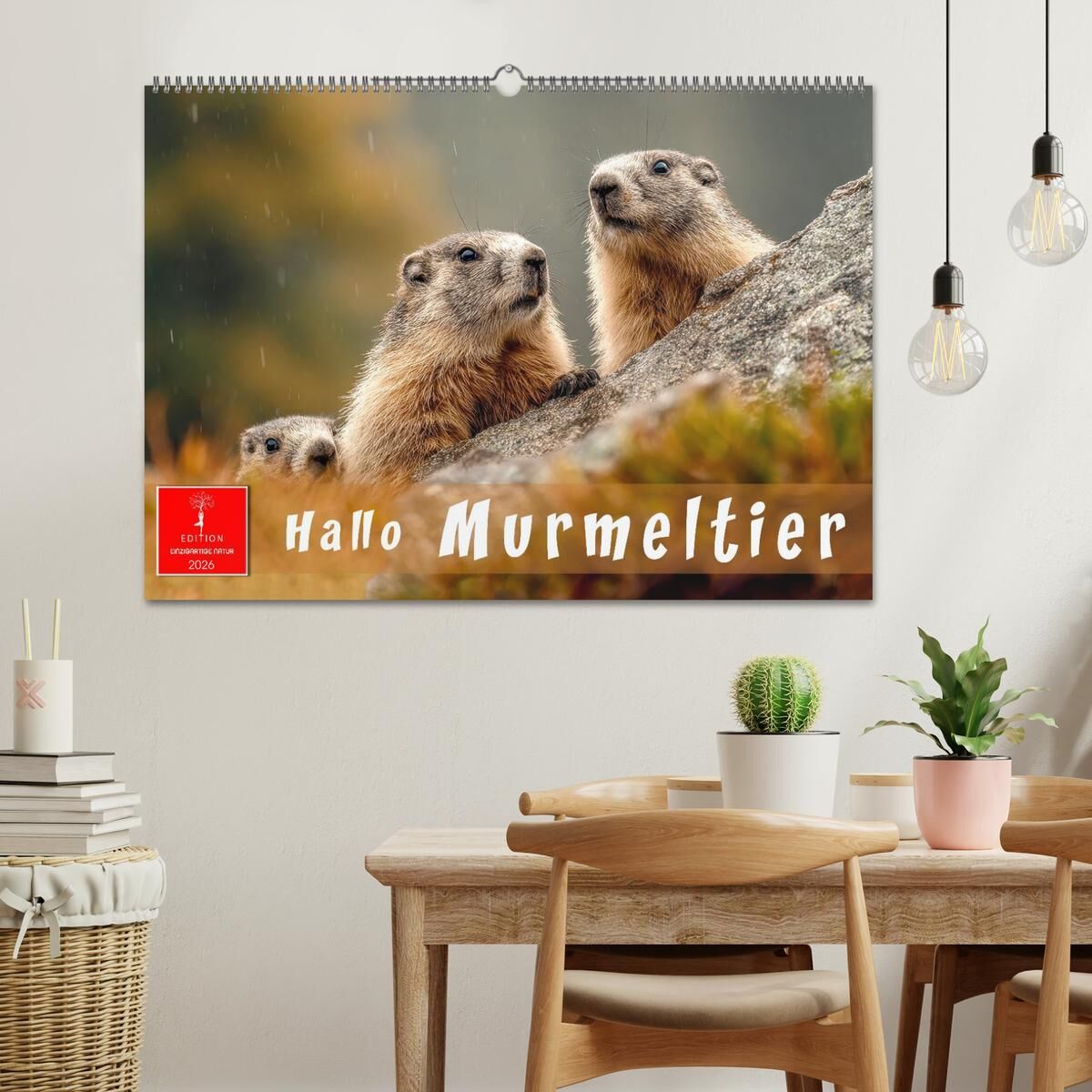 Hallo Murmeltier (Wandkalender 2026 DIN A2 quer), CALVENDO Monatskalender