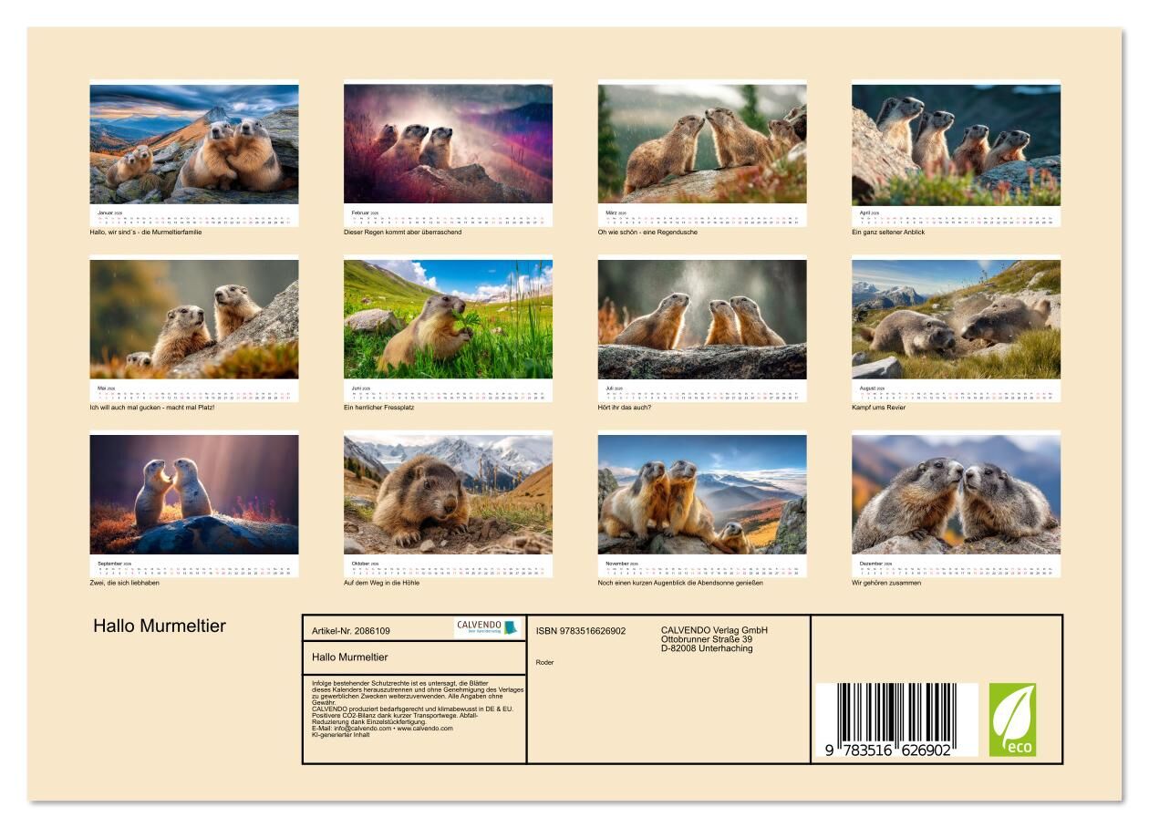 Kommen Sie mit auf eine Reise in die Welt der schüchternen Bergbewohner, die nur selten die Blicke der Wanderer erhaschen: die Murmeltiere. In stimmungsvollen KI-generierten Bildern fängt der Kalender die Magie dieser flinken Tiere ein, die normalerweise Einze...