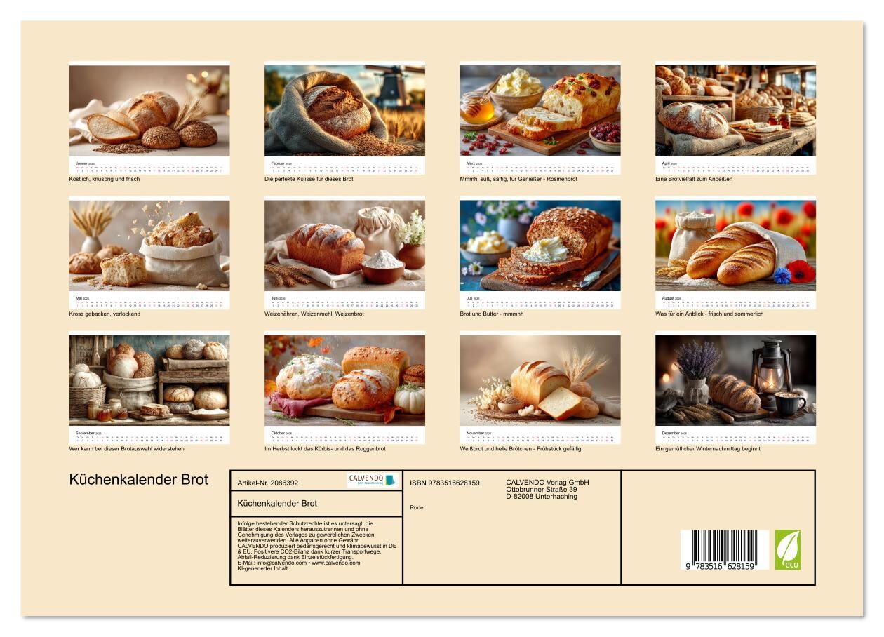 Küchenkalender Brot (Wandkalender 2026 DIN A3 quer), CALVENDO Monatskalender