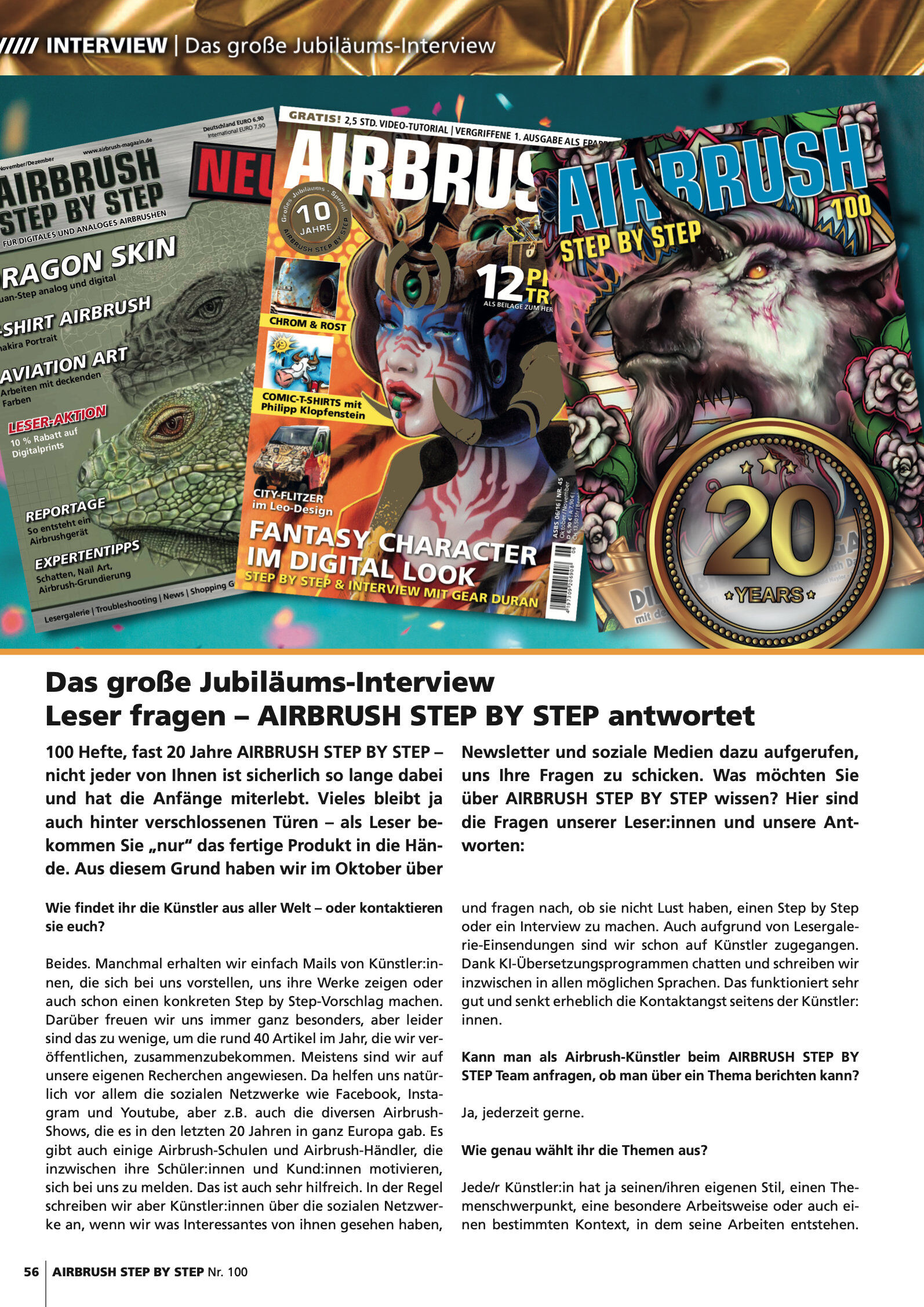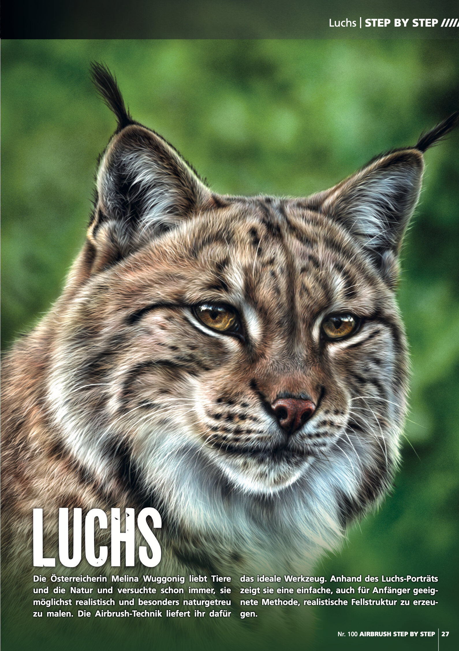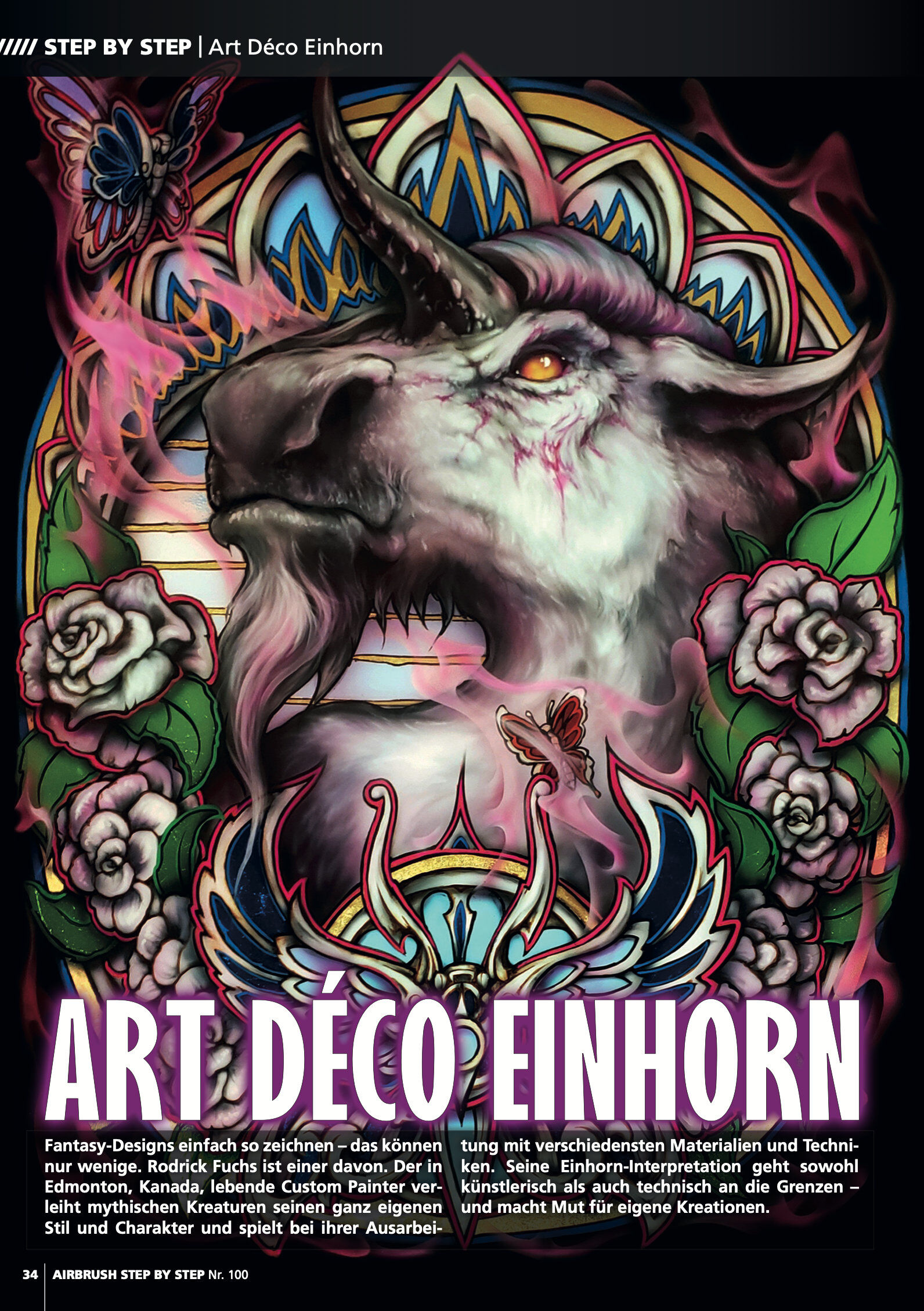 Step by Steps Einhorn-Design von Rodrick Fuchs Totenkopf im Joker-Style von Scott MacKay Luchs-Porträt von Melina Wuggonig Interviews Die heilsame Kunst von Anzhela Dmytrenko Airbrushen ohne Grenzen bei David Naylor Das große Jubiläums-Interview mit dem AIRBRU...