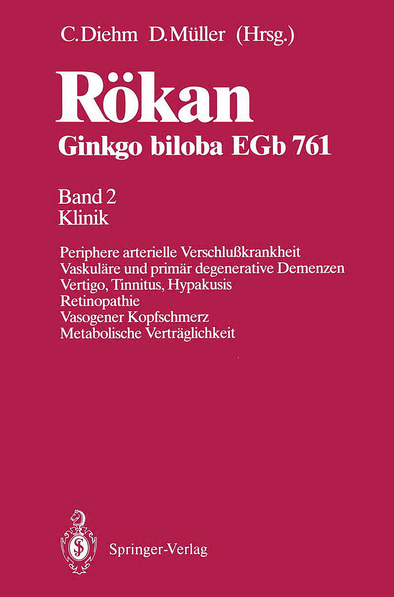 I Periphere arterielle Verschlußkrankheit.- 6monatige randomisierte Doppelblindstudie zur Wirkung von Rökan im Vergleich zu Placebo bei Patienten mit peripheren chronisch arteriellen Verschlußkrankheiten.- Behandlung der chronischen peripheren arteriellen Verschlußkrankheit mit physikalischem Training und Rökan Ergebnisse einer placebokontrollierten Doppelblindstudie.- Kontrollierte Doppelblind-Cross-over-Studie zur Wirksamkeit von Rökan bei arterieller Verschlußkrankheit der unteren Extremitäten.- Gekreuzte Doppelblindstudie zu Rökan bei Arteriopathien der unteren Extremitäten.- Rökan bei distalen diabetischen Arteriopathien.- Bizentrische Vergleichsstudie zwischen Rökan und Buflomedil bei der peripheren arteriellen Verschlußkrankheit im Stadium IIb nach Fontaine.- Therapie der PAVK mit Rökan (EGb 761) oder Pentoxifyllin. Vergleichsstudie zur Beurteilung von Wirksamkeit und Verträglichkeit.- Rökan-Behandlung der arteriellen Verschlußkrankheit im Fontaine-Stadium IV bei Diabetikern mit feuchter Gangrän.- II Vaskuläre und primär degenerative Demenzen.- Einfluß von Rökan auf neurophysiologische und psychometrische Meßergebnisse bei Patienten mit hirnorganischem Psychosyndrom. Eine Doppelblindstudie gegen Placebo.- Einfluß von Rökan auf die geistige Leistungsfähigkeit. Placebokontrollierte Doppelblindstudie unter computerisierten Meßbedingungen bei Patienten mit zerebraler Insuffizienz.- Untersuchung der Langzeitwirkung von Rökan auf die Vigilanz und mentale Leistungsfähigkeit mittels quantifiziertem Pharmako-EEG und psychometrischen Messungen.- Objektivierung der klinischen Effekte von Ginkgo-biloba-Extrakt bei cerebraler Insuffizienz mittels Dynamic-Brain-Mapping.- Rökan bei seniler cerebraler Insuffizienz. Doppelblindeplacebokontrollierte Multicenterstudie.- Quantifizierte Parameter zum Nachweis von cerebraler Durchblutungs- und Stoffwechselsteigerung unter Rökan.- Radiozirkulographische Studie über die Wirkung von Rökan bei cerebrovaskulärer Insuffizienz.- Therapie kognitiver Defizite im Alter mit Rökan. Ergebnisse einer multizentrischen Phase-IV-Studie mit testpsychologischer Operationalisierung.- III Vertigo, Tinnitus, Hypakusis.- Therapie mit Rökan bei vertebrobasilärer Insuffizienz.- Rökan versus Nicergolin bei Schwerhörigkeit, Schwindel und Ohrgeräuschen.- Randomisierte Doppelblindstudie zur Wirkung von Rökan bei Schwindel und Gangunsicherheit des älteren Menschen.- Experimentelle Mikrozirkulationsstörungen in der Neurootologie: Quantitative Erfassung der Therapiewirkungen von Extractum Ginkgo biloba.- Vergleichsstudie zwischen Rökan und Nicergolin bei akutem cochleärem Hörsturz.- Doppelblinde placebokontrollierte Multicenterstudie über die Behandlung von Gleichgewichtsstörungen mit Rökan.- Die Therapie neurologischer Vertigosyndrome beim hirnorganischen Psychosyndrom mit Rökan.- Cross-over-Studie zur Behandlung der vertebro-basilären Insuffizienz mit Rökan.- Elektronystagmographisch und klinisch dokumentierte Therapieerfahrungen mit Rökan bei Vertigo.- Randomisierte, placebokontrollierte doppelblinde Multicenterstudie zur Wirksamkeit von Rökan bei Tinnitus.- Rökan bei Innenohrschwerhörigkeit.- IV Retinopathie.- Prospektive randomisierte Doppelblinduntersuchung mit dosisgestaffelter Rökan-Behandlung bei älteren Patienten mit chronischer zerebroretinaler Mangelversorgung.- Behandlung von Störungen der retinalen Mikrozirkulation bei senilen Makulopathien mit Rökan.- Wirkung von Rökan auf die Mikrozirkulation der Retina.- Behandlung der senilenMakuladegeneration mit Rökan.- Langzeitbehandlung mit Rökan bei Durchblutungsstörungen von Retina und Nervus opticus.- Rökan bei Patienten mit chronischer cerebro-retinaler Mangelversorgung. Ersterfahrungen am Perimeter Octopus-2000-R.- V Vasogener Kopfschmerz, Kapillarhyperpermeabilität und positive Begleiteffekte.- Rökan bei Kopfschmerzen und Migräne.- Wirkung von Rökan beim vasogenen cerebralen Ödem.- Einfluß von Rökan auf die Kapillarhyperpermeabilität beim zyklischen idiopathischen Ödem.- Einfluß von Rökan auf metabolische und endocrine Laborparameter.