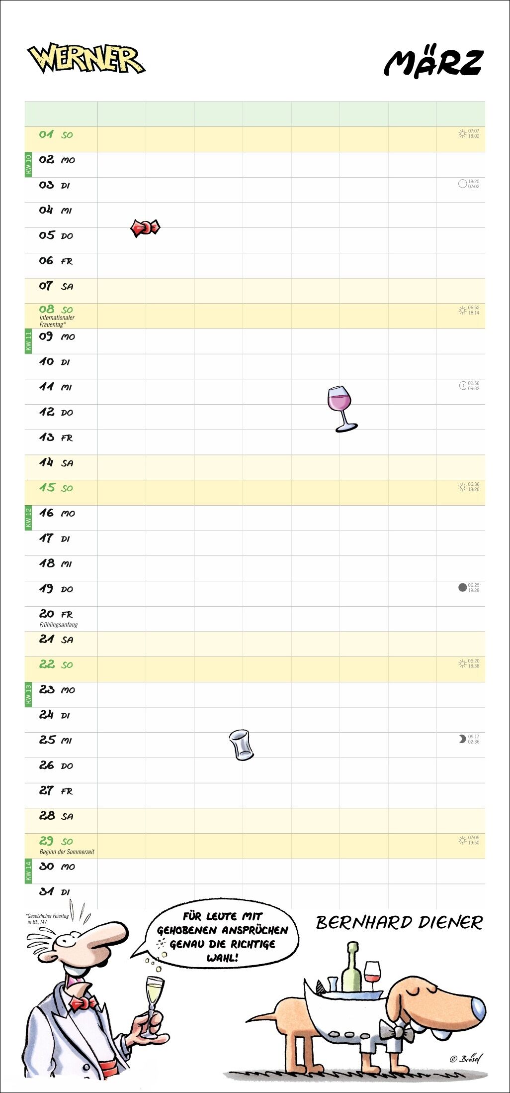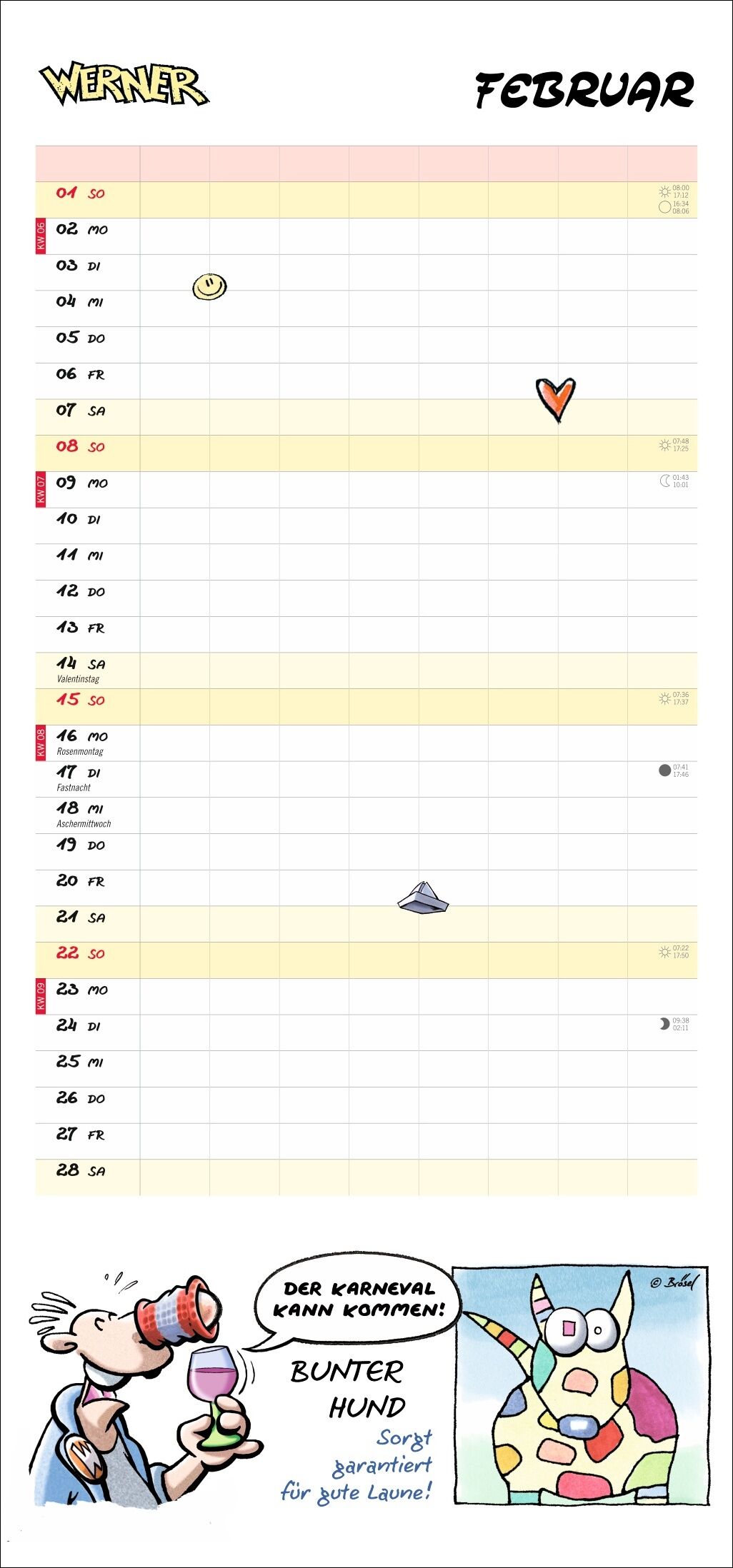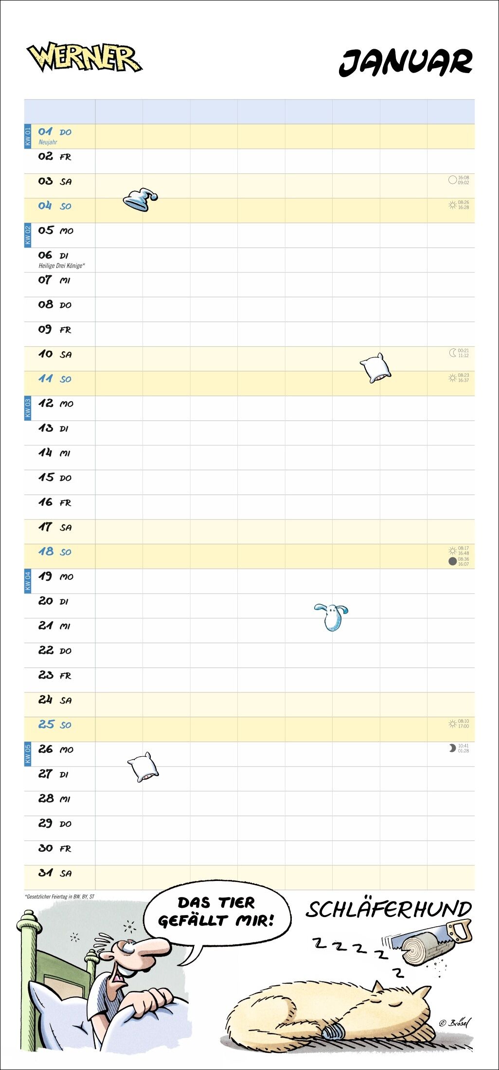 Werner für die Werkstatt oder das traute Heim: Der neue Wandkalender 2026! Wo steigt die nächste Montage und wann muss neuer Bölkstoff her? Der praktische Monats-Planer mit coolen Sprüchen und dem einzigartigen Humor von Brösels Werner Cartoons, die kesseln: E...