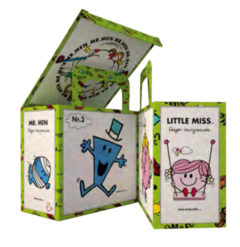15 Einzelausgaben Mr. Men und 15 Einzelausgaben Little Miss in einer aufklappbaren Sammelbox. Enthält folgende Einzeltitel: Mister Aua, Cool, Falsch, Fröhlich, Groß, Hüpf, Krach, Langsam, Neugierig, Quatschkopf, Schweigsam, Tölpel, Unmöglich, Vergesslich, Zack...