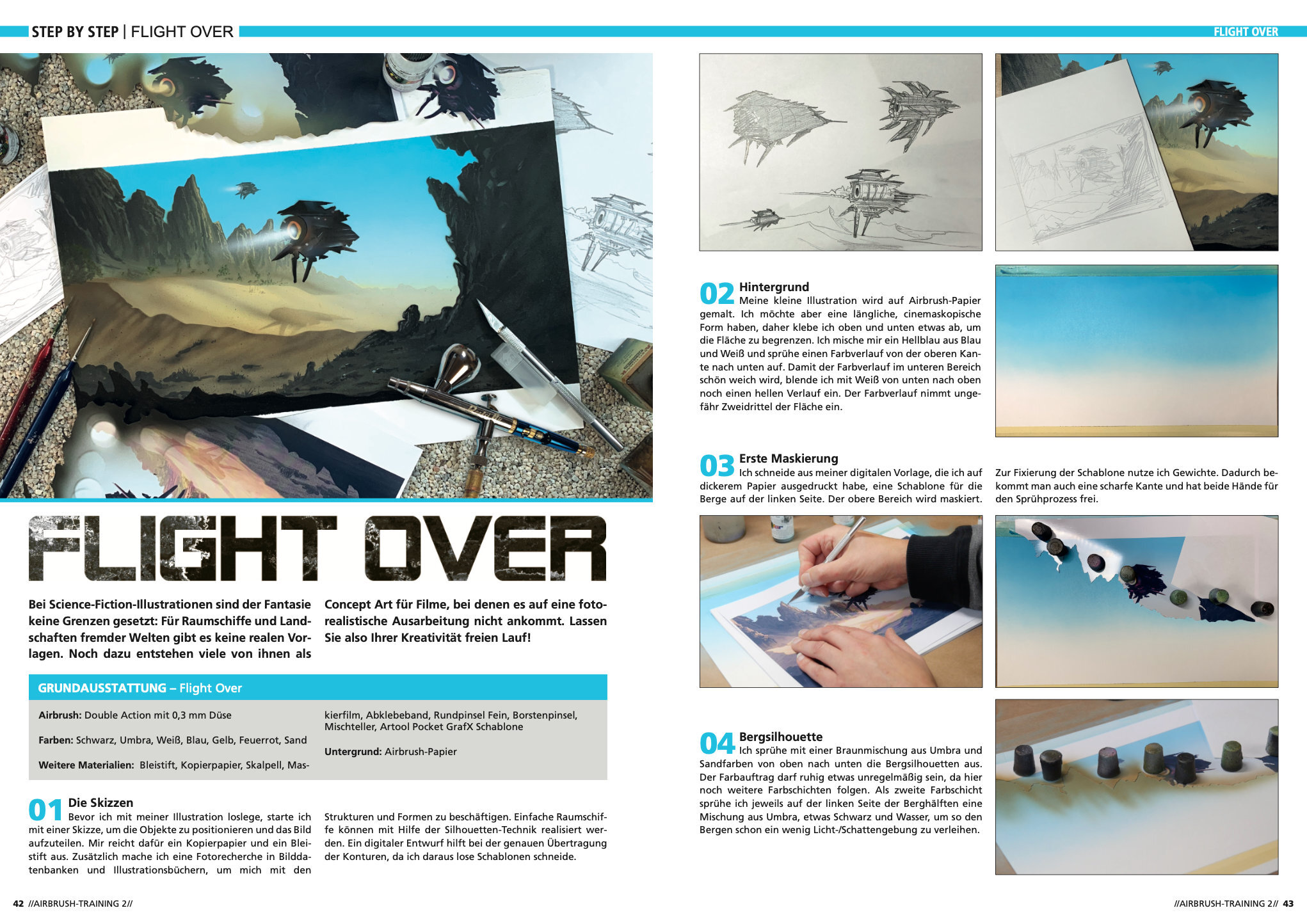 Airbrush-Training 2 Neue Übungen für Einsteiger Airbrush-Training 2 setzt das erfolgreiche Übungsbuch mit neun weiteren Schritt-für-Schritt-Anleitungen rund um Landschaften, Tiere, Fantasy- und Raumschiffillustrationen zum Üben und Nacharbeiten fort. Die gezei...