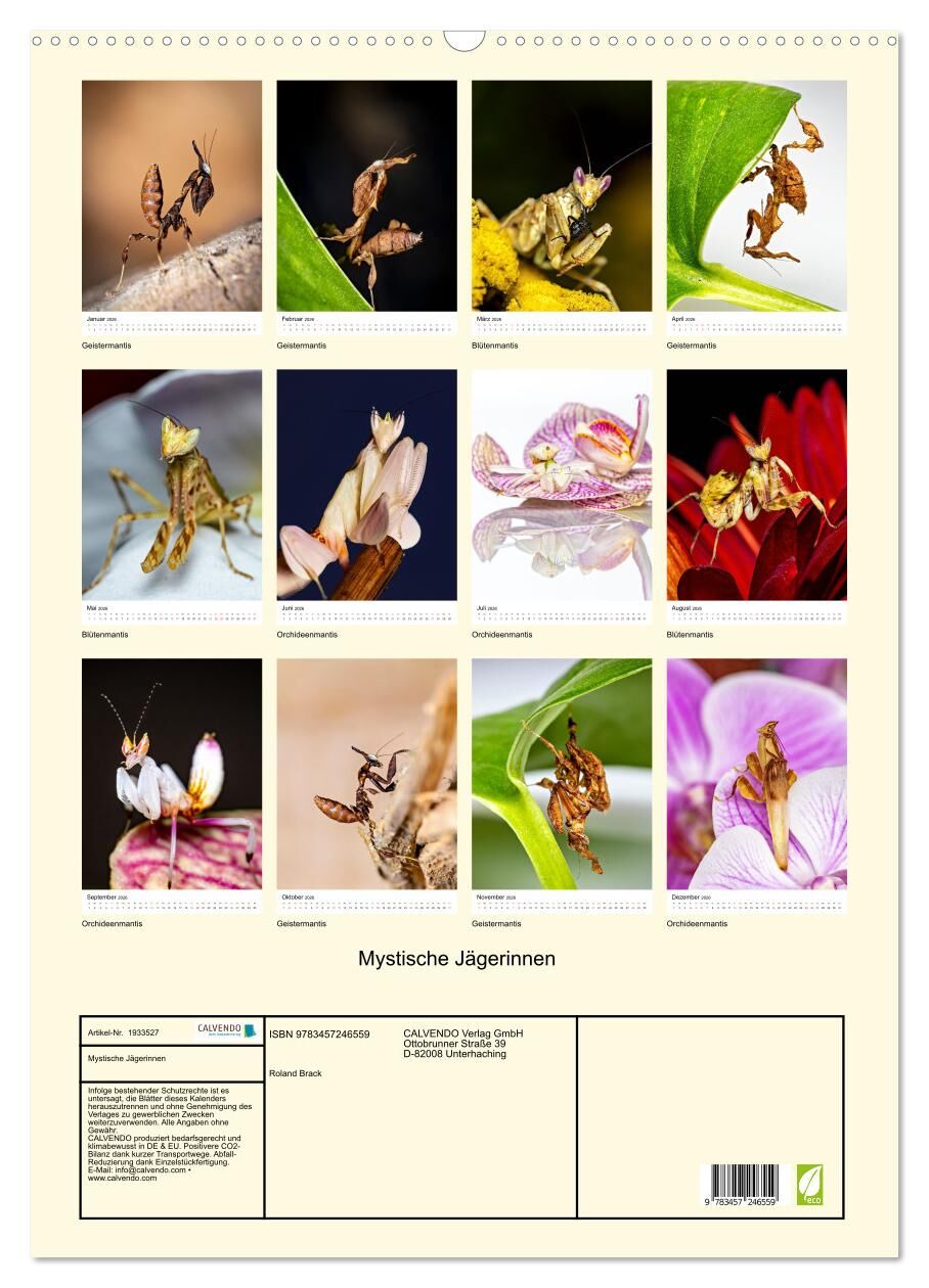 Mystische Jägerinnen lädt Sie ein, die faszinierende Welt der Gottesanbeterinnen zu entdecken. Dieser außergewöhnliche Kalender zeigt die geheimnisvolle Schönheit und Vielfalt dieser beeindruckenden Insekten in 12 hochwertigen Fotografien. Ob kunstvolle Tarnun...