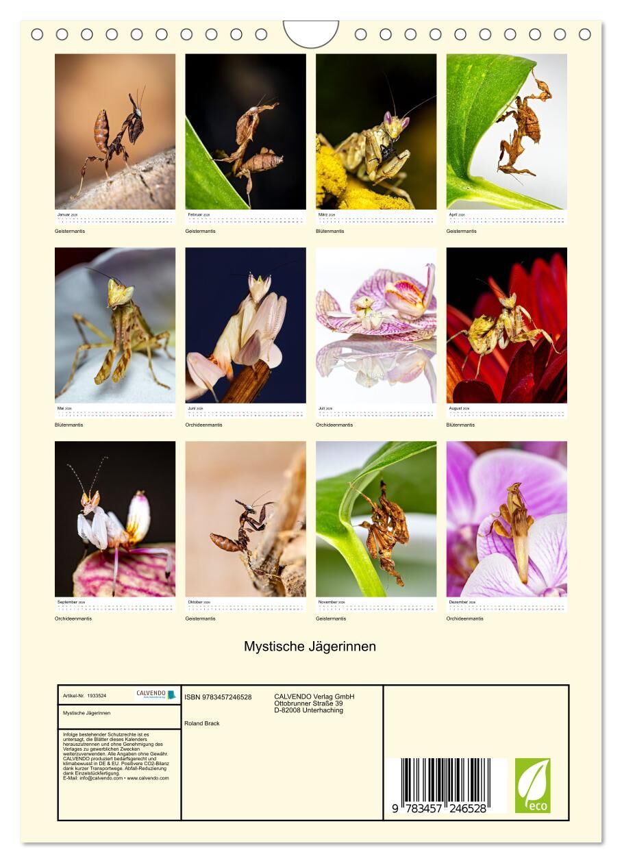 Mystische Jägerinnen lädt Sie ein, die faszinierende Welt der Gottesanbeterinnen zu entdecken. Dieser außergewöhnliche Kalender zeigt die geheimnisvolle Schönheit und Vielfalt dieser beeindruckenden Insekten in 12 hochwertigen Fotografien. Ob kunstvolle Tarnun...