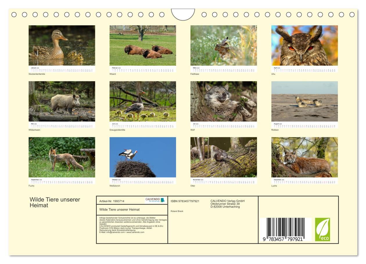 Dieser Kalender zeigt die wilden Tiere unserer Heimat. Jedes Monatsblatt zeigt ein neues Tier aus unserer Nachbarschaft, unserem Kulturland und unseren Wäldern, das wir fast gar nicht mehr oder nur noch mit viel Glück zu sehen bekommen.