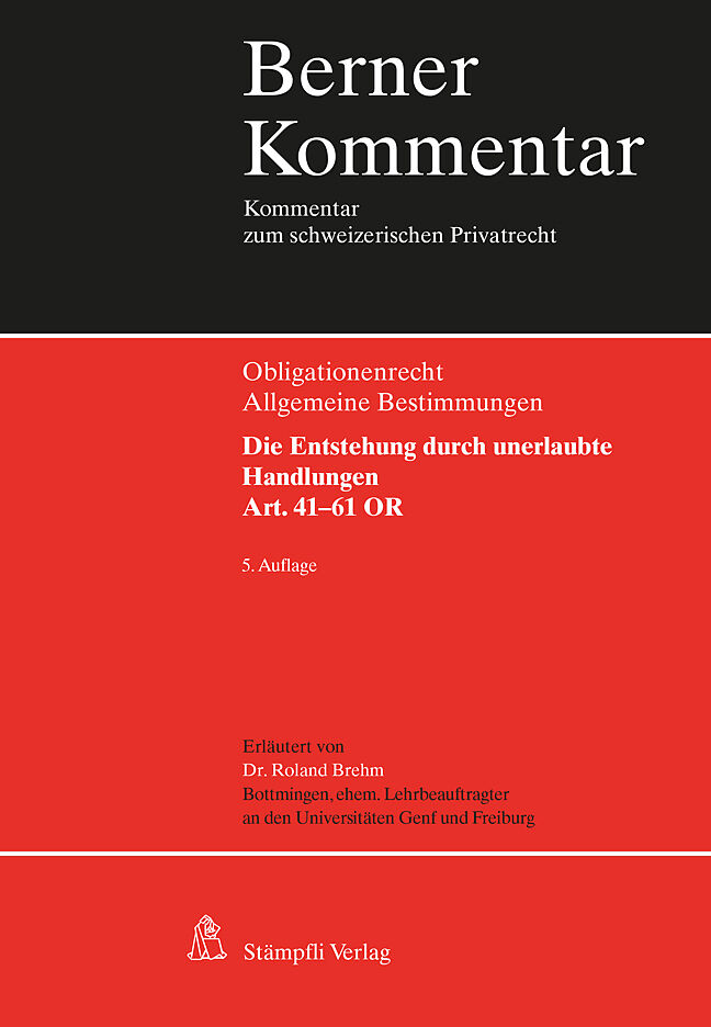 Seit dem Erscheinen der vierten Auflage dieses Kommentars sind acht Jahre verflossen. Während dieser Zeitspanne sind im Haftpflichtrecht wichtige Neuheiten eingetreten. Der Gesetzgeber hat teils textliche (Art. 59a OR), teils materielle Gesetzesänderungen vorg...