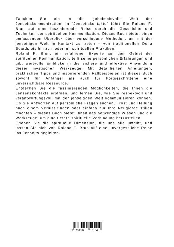 Tauchen Sie ein in die geheimnisvolle Welt der Jenseitskommunikation! In "Jenseitskontakte" führt Sie Roland F. Brun auf eine faszinierende Reise durch die Geschichte und Techniken der spirituellen Kommunikation. Dieses Buch bietet einen umfassenden Überblick ...