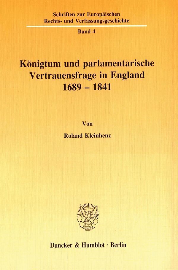 Königtum und parlamentarische Vertrauensfrage in England 1689 - 1841