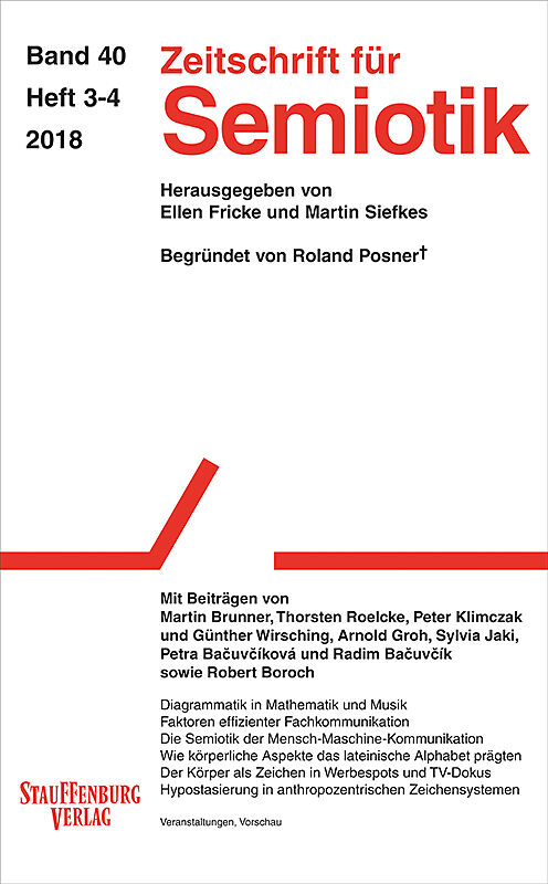 Aus dem Inhalt: Martin Brunner: Diagrammatik in Mathematik und Musik Thorsten Roelcke: Faktoren effizienter Fachkommunikation Peter Klimczak und Günther Wirsching: Maschinensemiotik Arnold Groh: Die Widerspiegelung von Körperlichkeit in der Entstehung des Alph...