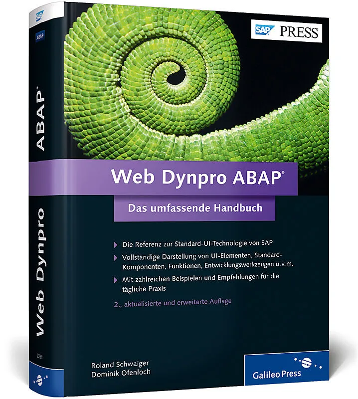 Über dieses BuchProgrammieren Sie zeitgemäße und benutzerfreundliche Oberflächen! Dieses Buch stellt alle Themen rund um Web Dynpro ABAP systematisch vor: die Web-Dynpro-Architektur, sämtliche UI-Elemente, dynamische Programmierung und Entwurfsmuster. In diese...Über dieses BuchProgrammieren Sie zeitgemäße und benutzerfreundliche Oberflächen! Dieses Buch stellt alle Themen rund um Web Dynpro ABAP systematisch vor: die Web-Dynpro-Architektur, sämtliche UI-Elemente, dynamische Programmierung und Entwurfsmuster. In dieser 2. Auflage wurden Informationen zu den neuen UI-Elementen ergänzt, z. B. zur Integration von HTML-, JavaScript- und CSS-Quellen. Tipps und Tricks, aussagekräftige Codebeispiele, Überblickstabellen und Screenshots helfen Ihnen dabei, die Antworten auf Ihre Fragen schnell zu finden und direkt in der Praxis umzusetzen. Ihr praktischer Begleiter für den Programmieralltag!Aus dem Inhalt:SchnelleinstiegWeb-Dynpro-ArchitekurContainer LayoutsUI-ElementeDrag & DropDynamische ProgrammierungEingabehilfen und semantische HilfenErweiterung, Konfiguration, Customizing und PersonalisierungKomplexe UI-Elemente und Components