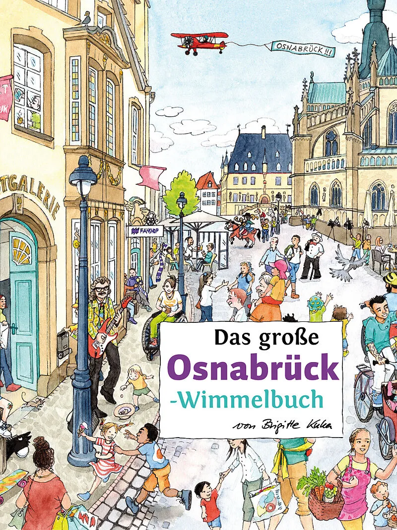 Kennst du Osnabrück? Dann komm doch mit auf eine Wimmelreise durch unsere tolle Stadt: Vom Bahnhof in die Altstadt und dort auf den Marktplatz, von hier zum Koggenstrand und dann hinaus in den Zoo, danach zum VfL-Stadion an der Bremer Brücke und im Ballonflug ...Kennst du Osnabrück? Dann komm doch mit auf eine Wimmelreise durch unsere tolle Stadt: Vom Bahnhof in die Altstadt und dort auf den Marktplatz, von hier zum Koggenstrand und dann hinaus in den Zoo, danach zum VfL-Stadion an der Bremer Brücke und im Ballonflug über die ganze Stadt, an einem warmen Herbsttag auf den Herrenteichswall und zuletzt zum winterlichen Weihnachtsmarkt auf den Domhof. Findest du überall dieselben Leute wieder: den Opa mit Hut und Stock oder die Dame mit dem Hündchen? Den Skater mit der roten Kappe, den Papa mit seinem Baby oder die Mutter mit ihrer Tochter? Ben mit dem schwarzen Wuschelkopf oder Mila mit den blonden Zöpfen? Außerdem verstecken sich auf jedem Bild eine kleine Maus und eine kleine Schnecke. Und weil wir ja in der Hase-Stadt sind, gibt's immer auch einen Hasen, ein Osnabrücker Rad und einen lila-weißen VfL-Schal zu finden. Viel Spaß beim Wimmeln! +++ +++ +++ Die erfolgreiche tpk-Reihe der handgezeichneten STÄDTE-WIMMELBÜCHER umfasst mehr als 20 Titel. Jeweils sieben markante Orte in einer Stadt werden gut wiedererkennbar und prall mit Leben gefüllt dargestellt, zahlreiche Suchaufgaben für Kinder und Vorleser*innen kommen dazu. Mit viel Herz und Verstand setzen die Illustratorinnen Brigitte Kuka und Carmen Hochmann das tpk-Wimmelkonzept um und schaffen mit Stift und Pinsel echte Aquarell-Ansichten; jedes Wimmelbuch hat dabei ganz viel Seele und Lokalkolorit. +++ +++ +++ Bisher erschienen: BIELEFELD-Wimmelbuch: 978-3-936359-56-5 BONN-Wimmelbuch: 978-3-936359-69-5 CUXHAVEN-Wimmelbuch: 978-3-936359-90-9 DORTMUND-Wimmelbuch: 978-3-936359-76-3 DUISBURG-Wimmelbuch: 978-3-936359-77-0 DÜSSELDORF-Wimmelbuch: 978-3-936359-82-4 ESSEN-Wimmelbuch: 978-3-936359-83-1 FREIBURG-Wimmelbuch: 978-3-910490-06-2 GÖTTINGEN-Wimmelbuch: 978-3-936359-95-4 GÜTERSLOH-Wimmelbuch: 978-3-936359-72-5 HANNOVER-Wimmelbuch: 978-3-936359-70-1 KASSEL-Wimmelbuch: 978-3-936359-63-3 KOBLENZ-Wimmelbuch: 978-3-910490-07-9 KÖLN-Wimmelbuch: 978-3-936359-94-7 LANGEOOG-Wimmelbuch: 978-3-936359-67-1 MARBURG-Wimmelbuch: 978-3-936359-98-5 MÜNSTER-Wimmelbuch: 978-3-936359-85-5 OLDENBURG-Wimmelbuch: 978-3-936359-99-2 OSNABRÜCK-Wimmelbuch: 978-3-910490-08-6 PADERBORN-Wimmelbuch: 978-3-936359-62-6 ST. PETER-ORDING-Wimmelbuch: 978-3-910490-03-1 WUPPERTAL-Wimmelbuch: 978-3-936359-73-2