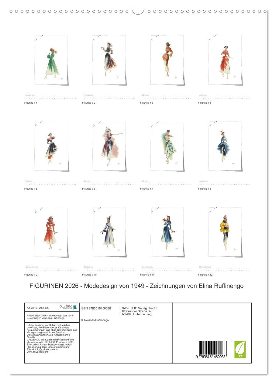 FIGURINEN 2026 - Modedesign von 1949 - Zeichnungen von Elina Ruffinengo (hochwertiger Premium Wandkalender 2026 DIN A2 hoch), Kunstdruck in Hochglanz