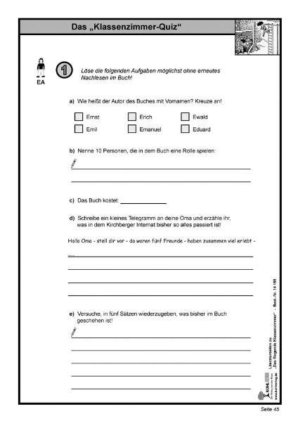 Dieses Heft bietet direkt einsetzbares Begleitmaterial zur Lektüre, die hier kapitelweise aufgearbeitet wird. Dadurch verinnerlicht der Schüler den Inhalt des Lesestoffes effektiver! Jedem Kapitel ist mindestens ein Arbeitsblatt mit abwechslungsreichen Aufgabe...
