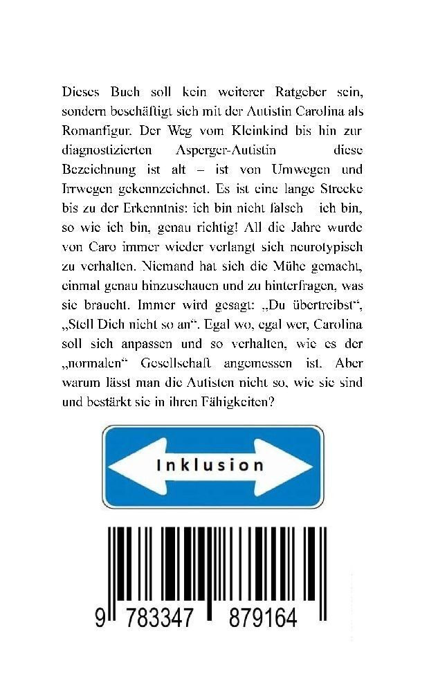 Hier wird der Lebens- und Leidensweg einer Autistin nachgezeichnet. Von Carolinas Geburt über die Schulzeit bis zur Autismus Diagnose im Alter von 57 Jahren. Ein Weg der durch den Alkoholismus des Vaters und die Co-Abhängigkeit der Mutter geprägt ist. Caros ei...