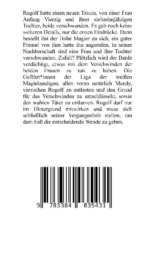 Rogolf der Barde und Mandy müssen ein weiteres Abenteuer bestehen. Diesmal gerät Rogolf in den Verdacht, mit dem Verschwinden von zwei Frauen etwas zu tun zu haben. Er darf anfangs nicht mit ermitteln, da er als Tatverdächtiger gilt. Schnell stellt sich heraus...