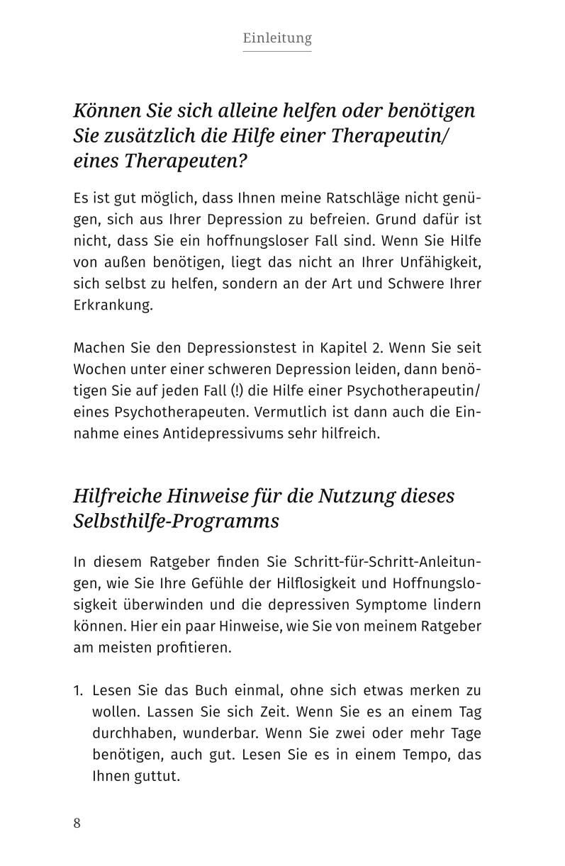 Wenn es Ihnen wie den meisten depressiven Menschen geht, dann haben Sie die Hoffnung aufgegeben, jemals wieder aus Ihrem Stimmungstief herauszukommen. Gleichgültig jedoch, wie lange und wie stark Sie deprimiert sind, es gibt Hoffnung. Die Kognitive Verhaltenst...