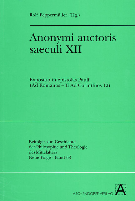 Erstmals wird hier ein Paulinenkommentar aus der zweiten Hälfte des 12. Jahrhunderts vorgelegt, der dogmatisch sehr wertvoll ist (A.M.Landgraf). So enthält er eine ausführliche Stellungnahme zum christologischen Streit, wobei er sich gegen die Habitus-Theorie ...