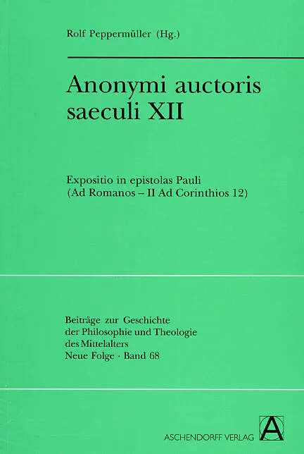 Erstmals wird hier ein Paulinenkommentar aus der zweiten Hälfte des 12. Jahrhunderts vorgelegt, der dogmatisch sehr wertvoll ist (A.M.Landgraf). So enthält er eine ausführliche Stellungnahme zum christologischen Streit, wobei er sich gegen die Habitus-Theorie ...