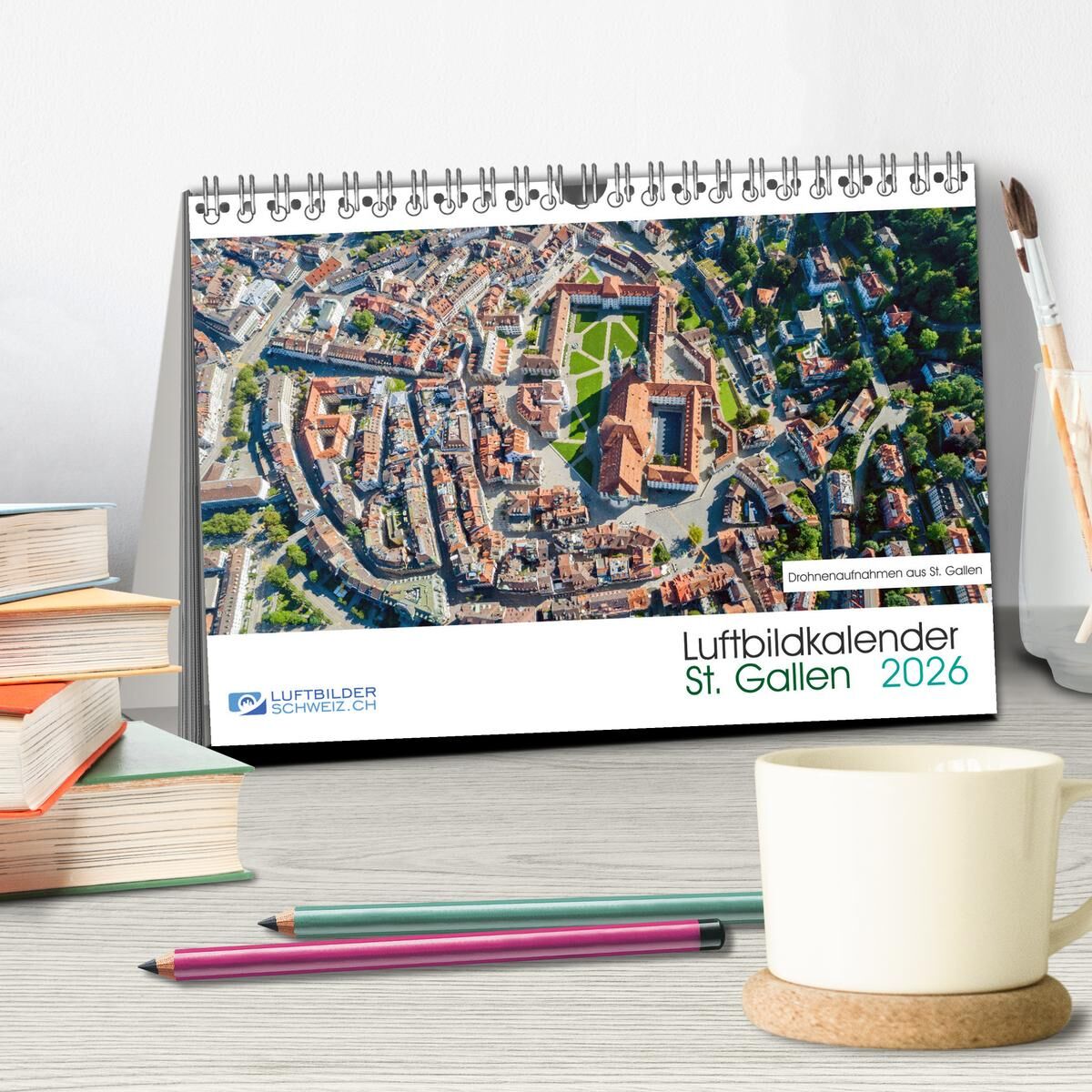 Luftbildkalender St. Gallen 2026 (Tischkalender 2026 DIN A5 quer), CALVENDO Monatskalender