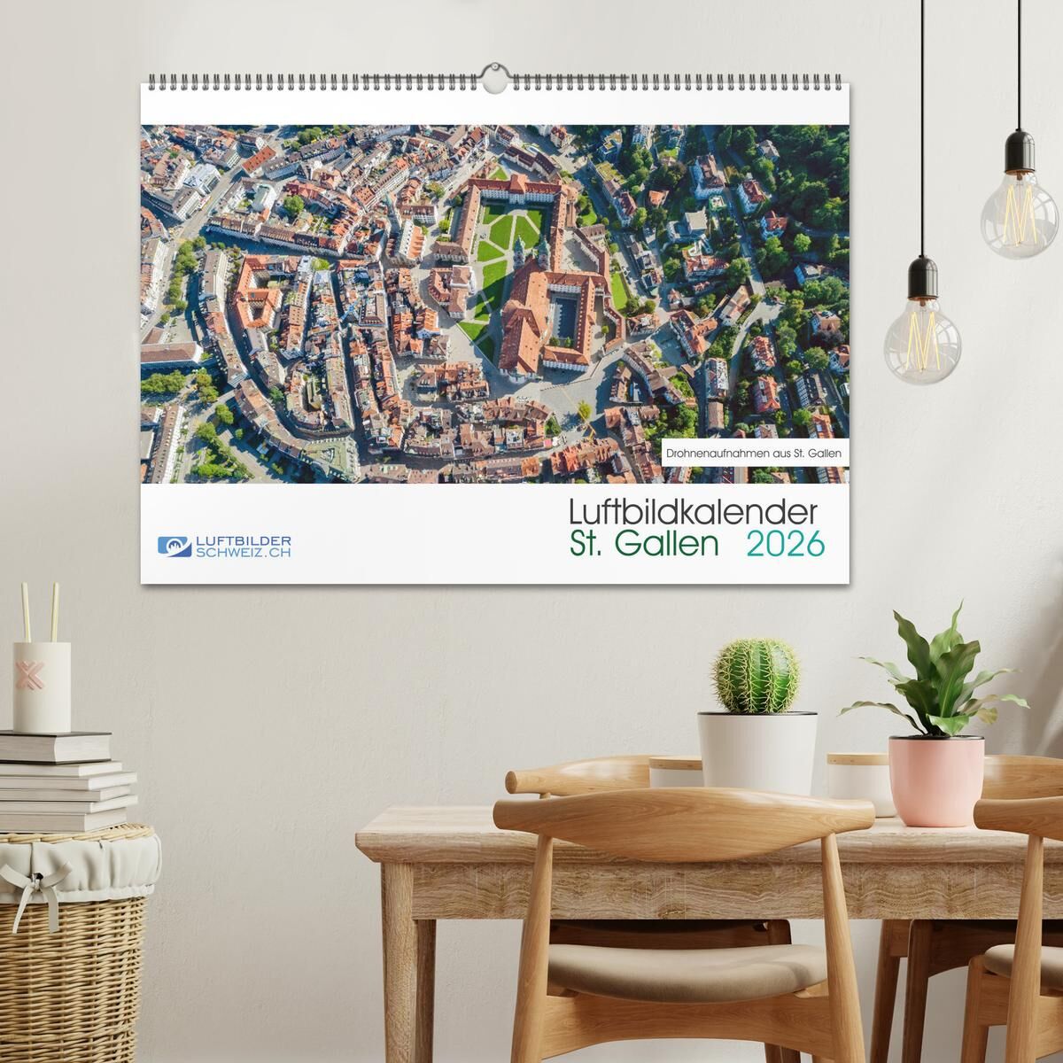 Luftbildkalender St. Gallen 2026 (Wandkalender 2026 DIN A2 quer), CALVENDO Monatskalender