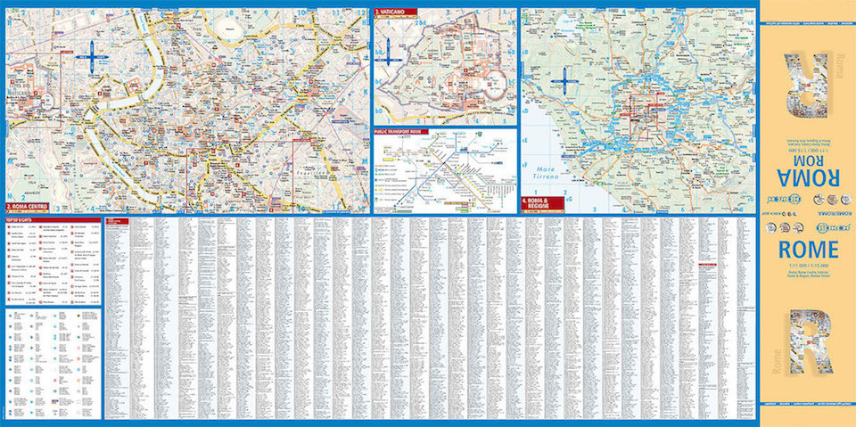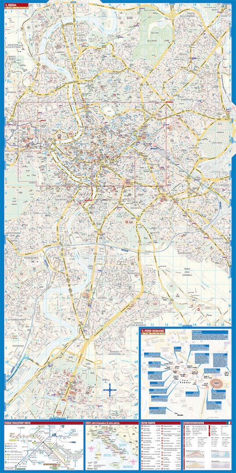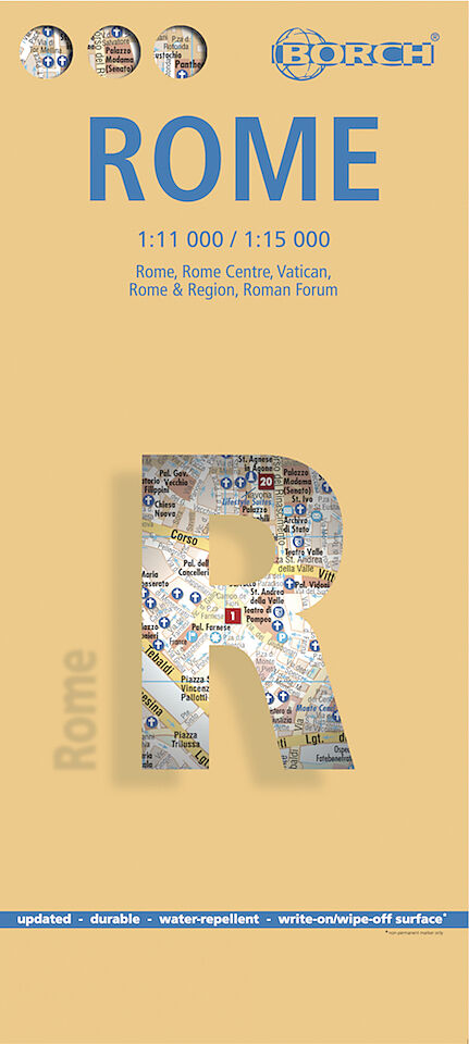 Our laminated and folded Borch Map of Rome in the 15th edition contains: Rome 1:15 000, Rome Centre 1:11 000, Vatican 1:7 000, Rome & Region 1:250 000, Roman Forum 1:7 000, the public transport system and an administrative map of Italy. Borch Maps contain ...