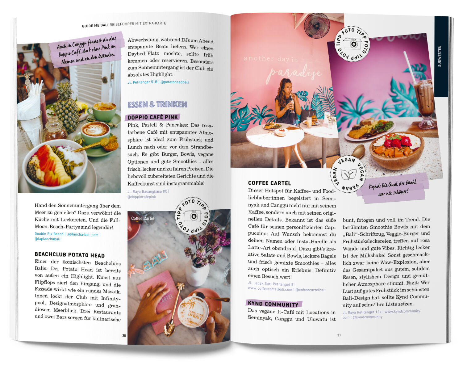 Auf ins Inselparadies Bali! Das ikonische Himmelstor des Pura-Lempuyang-Tempels, die dunkelgrünen Reisterrassen, der Tibumana-Wasserfall Zu diesen und weniger bekannten Spots auf Bali und den Inseln Nusa Penida, Nusa Ceningan und Nusa Lembongan führen die Fot...