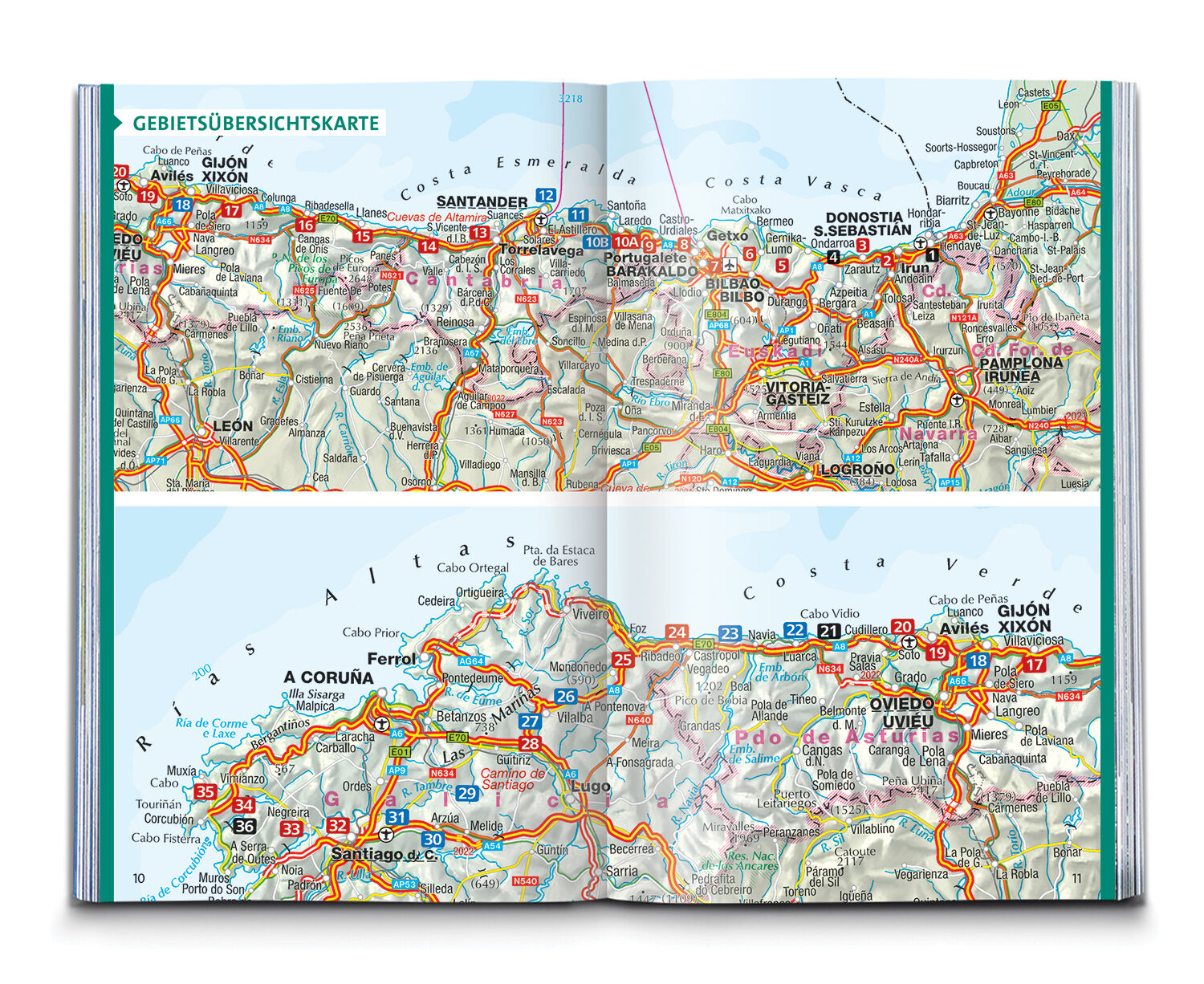 Kompass Wanderführer Jakobsweg Camino del Norte Der Jakobsweg Camino del Norte beeindruckt mit Küstenpanoramen, malerischen Dörfern und historischen Städten. Die Route führt entlang der nordspanischen Küste, durch grüne Landschaften und über charmante Brücken...