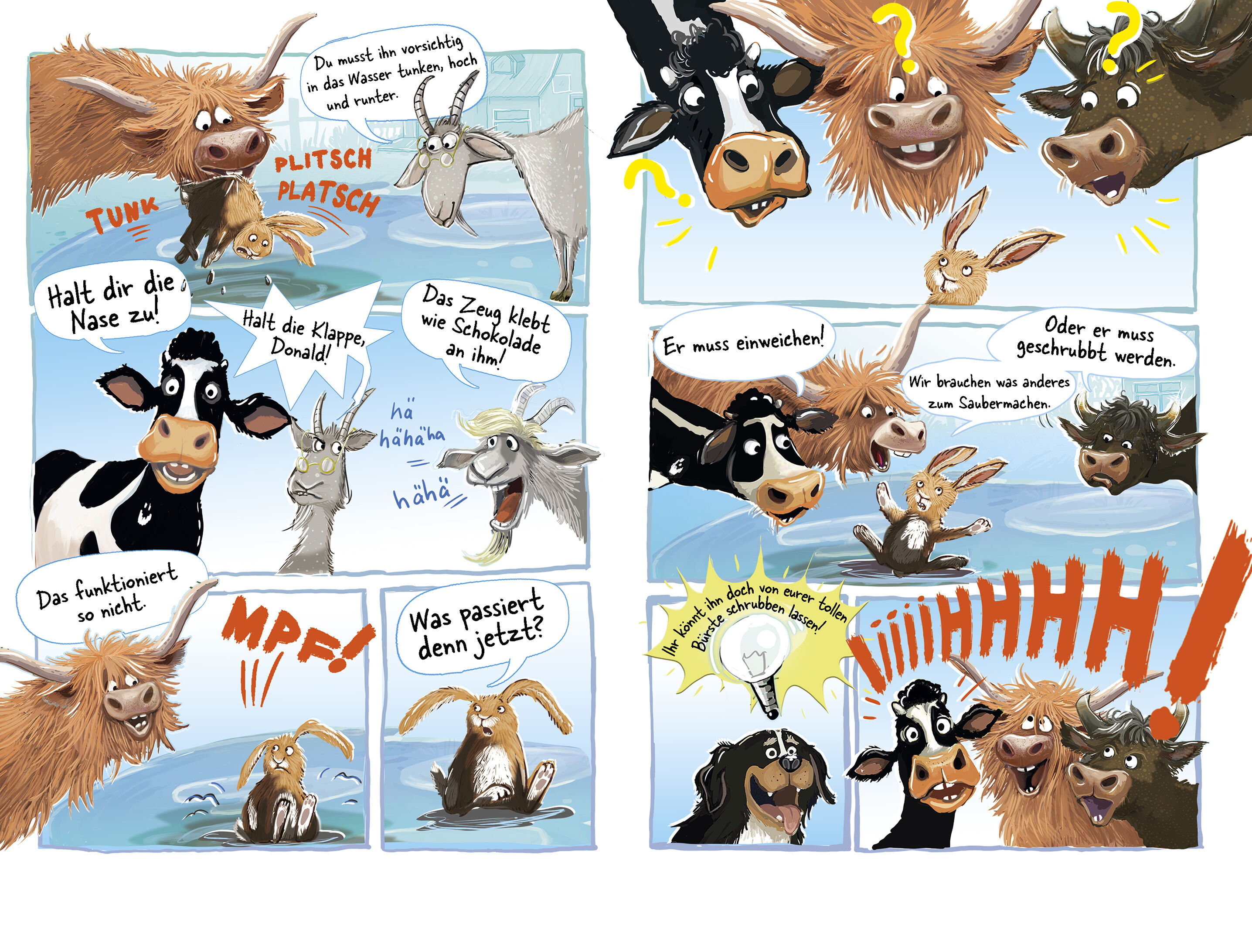 Helden der Weide - Vier Hasen für ein Tralala Leicht lesbare Geschichten mit Comic-Elementen rund um sympathische Rinder und ihre lustigen Abenteuer im Stall und auf der Weide. Ein neues Abenteuer für Hochlandrind Shaggy und seine tierischen Freunde vom Rosmar...