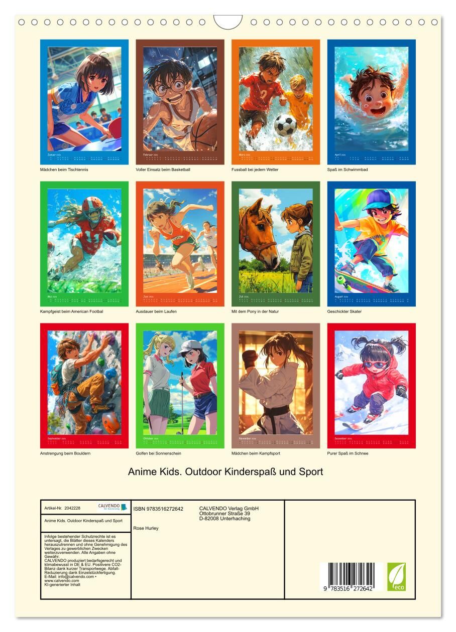 Erlebe die aufregende Welt der bunten Comic Kids! Dieser Kalender begleitet dich durch das ganze Jahr mit dynamischen Illustrationen von Kindern, die verschiedenste Sportarten ausüben. Alle Bilder wurden mit Hilfe von KI erstellt und jeder Monat bringt eine ne...