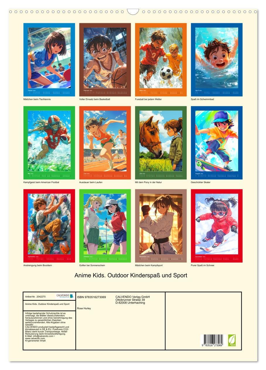 Anime Kids. Outdoor Kinderspaß und Sport (Wandkalender 2026 DIN A2 hoch), CALVENDO Monatskalender