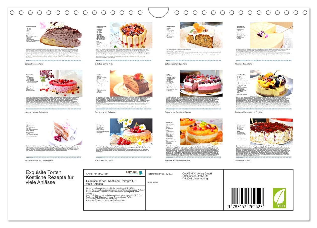 Köstliche Torten gehören eindeutig zu den leckersten "Sünden". Das Backen dieser Köstlichkeiten macht zudem große Freude. Dieser Küchenkalender ist nicht nur sehr ansprechend, er überzeugt auch mit beliebten Torten-Rezepten für das ganze Jahr. Gutes Gelingen!