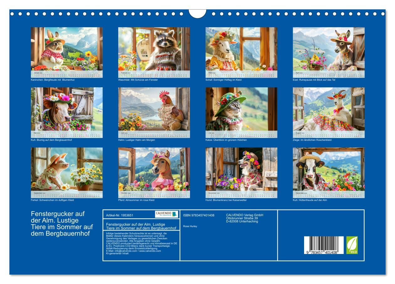 Willkommen zu einem Jahr voll alpiner Unterhaltung mit diesem lustigen Kalender! Jedes Bild wurde mit Hilfe von KI-erstellt und zeigt lieblichen Bauernhoftiere, die sich auf dem Bergbauernhof am Fenster tummeln und die atemberaubende Aussicht auf Berge und Hüg...