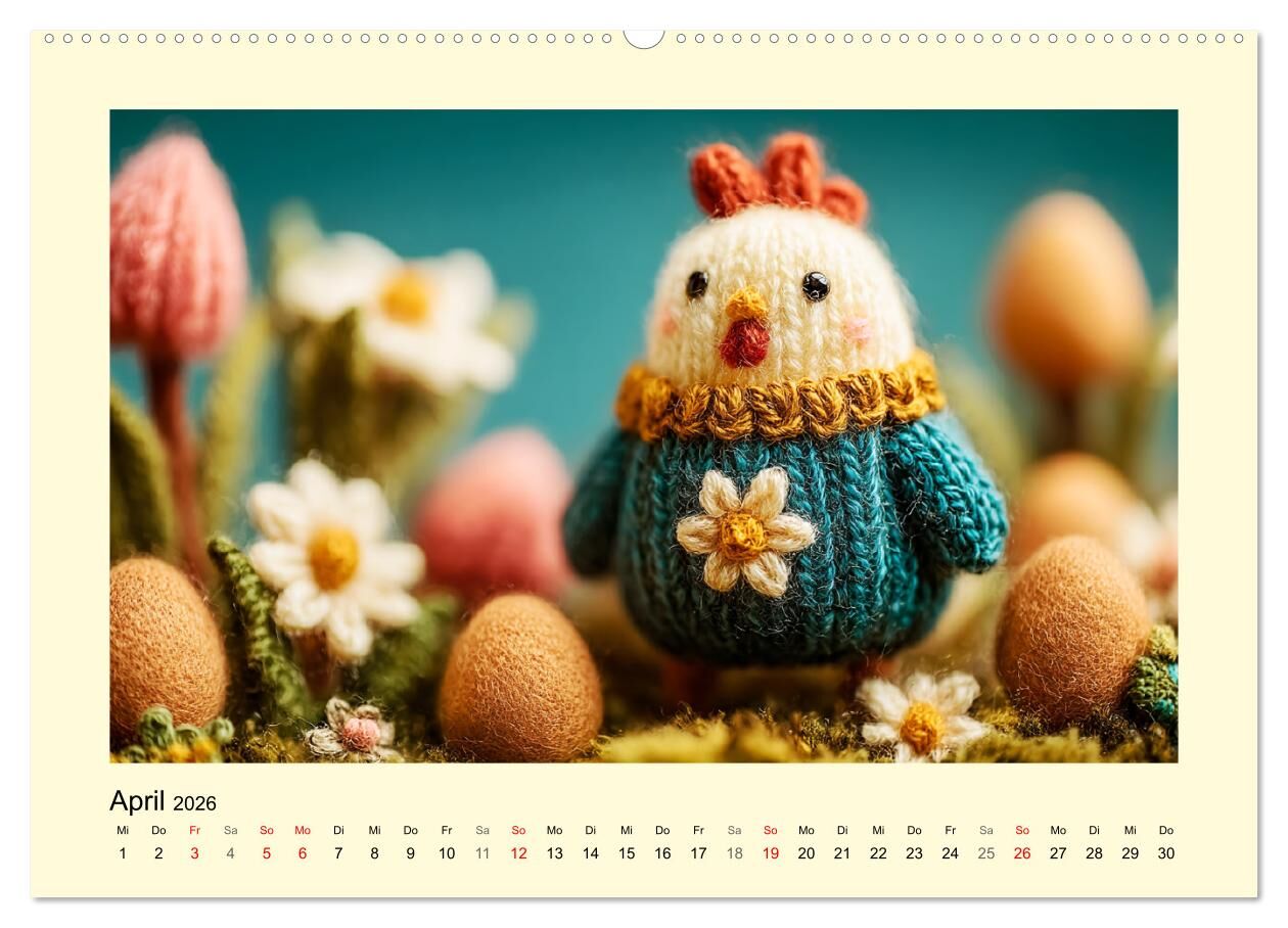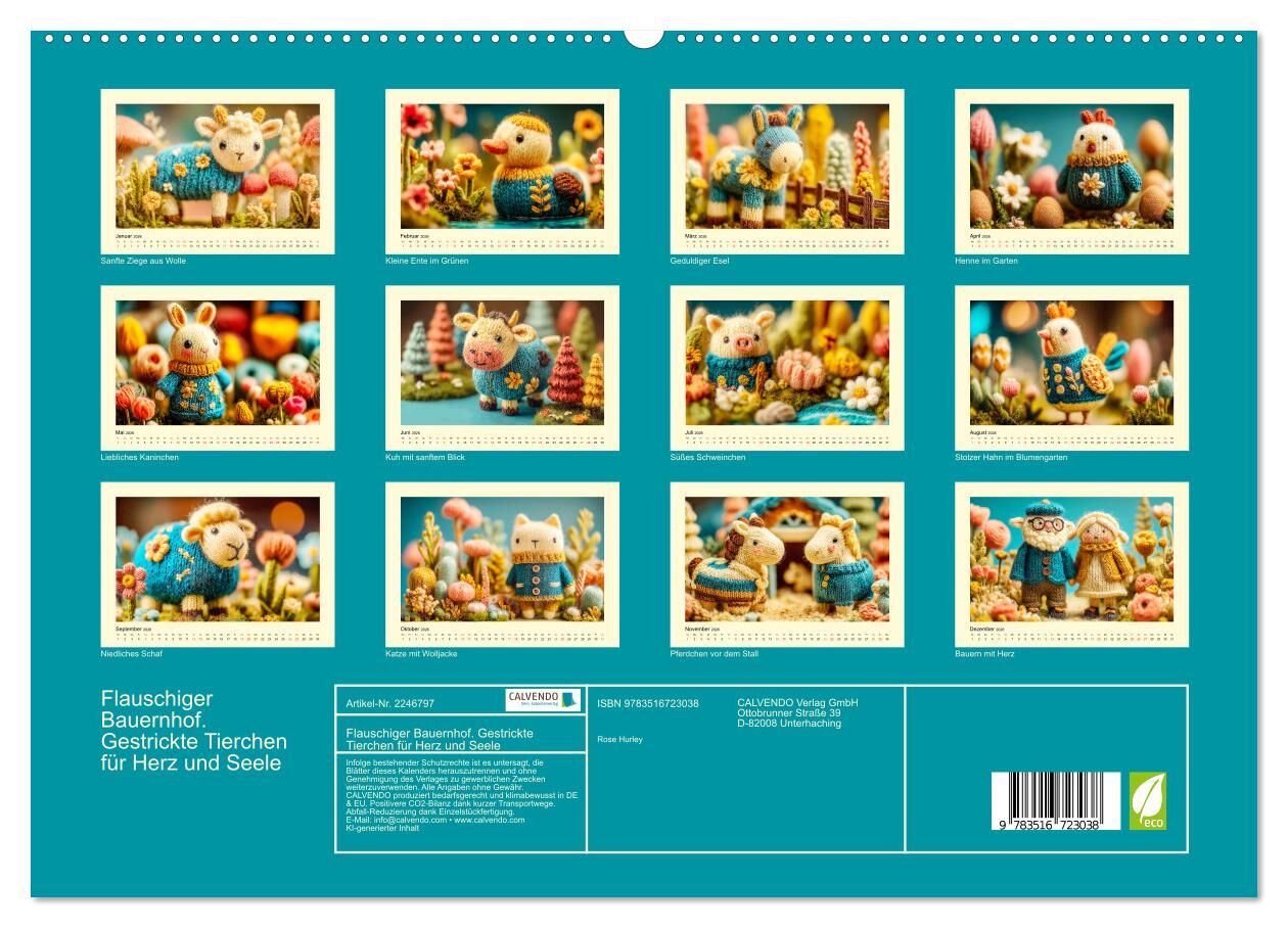Dieser Kalender entführt in eine idyllische Wollwelt, in der jedes Tier mit zarter Hand gestrickt wurde. Von der niedlichen Henne bis zum süßen Schaf jedes Motiv wurde mit der Hilfe von KI erstellt und verströmt ländliche Ruhe und Geborgenheit. Die dezenten La...