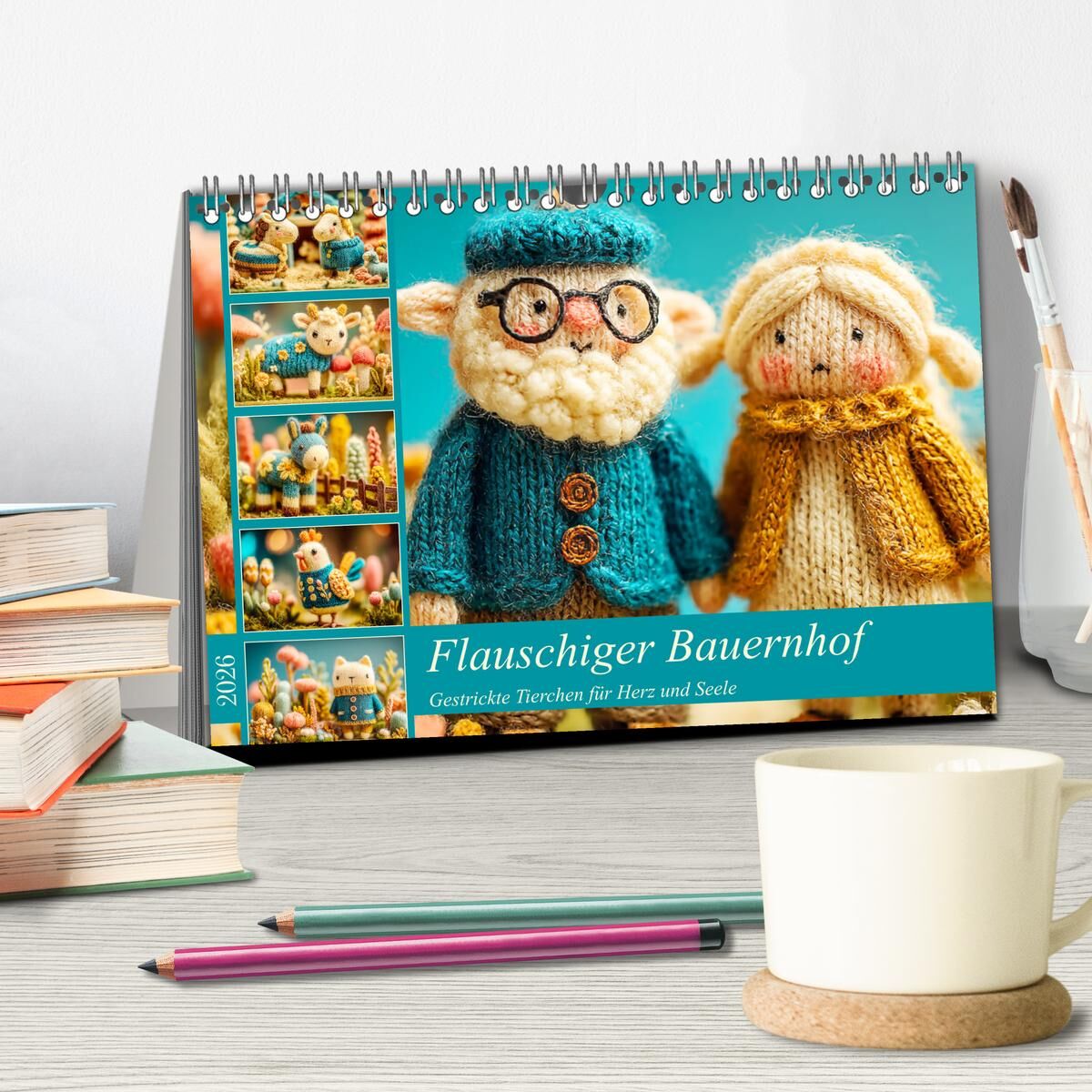 Dieser Kalender entführt in eine idyllische Wollwelt, in der jedes Tier mit zarter Hand gestrickt wurde. Von der niedlichen Henne bis zum süßen Schaf jedes Motiv wurde mit der Hilfe von KI erstellt und verströmt ländliche Ruhe und Geborgenheit. Die dezenten La...