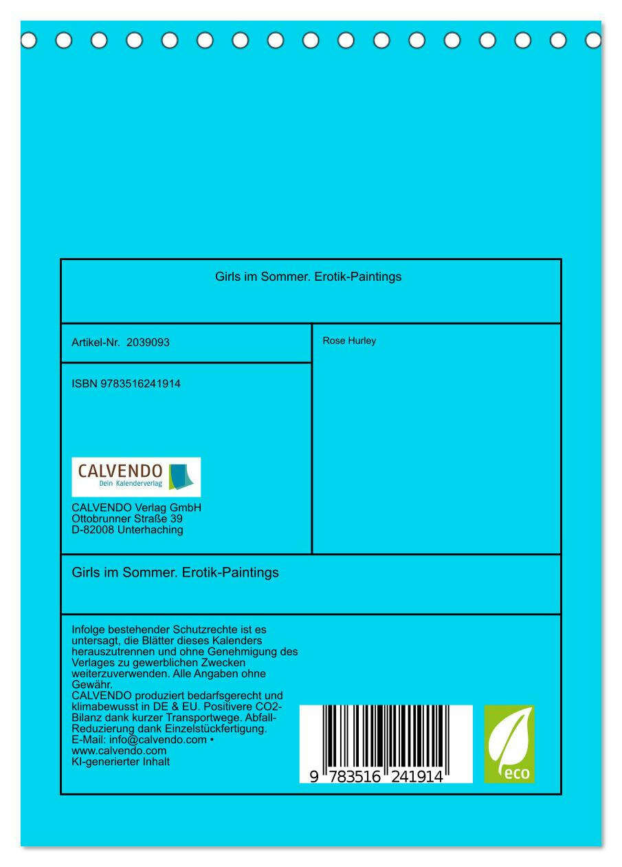 Dieser Kalender fängt die Schönheit und Ausstrahlung selbstbewusster Frauen in sommerlichen Szenerien ein. Jedes Painting zeigt freizügige Girls in der Sonne, am Wasser und umgeben von purer Leichtigkeit. Mit sinnlicher Eleganz verkörpern sie die Wärme und Lei...