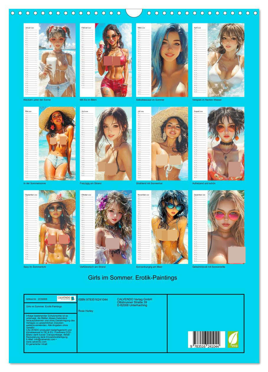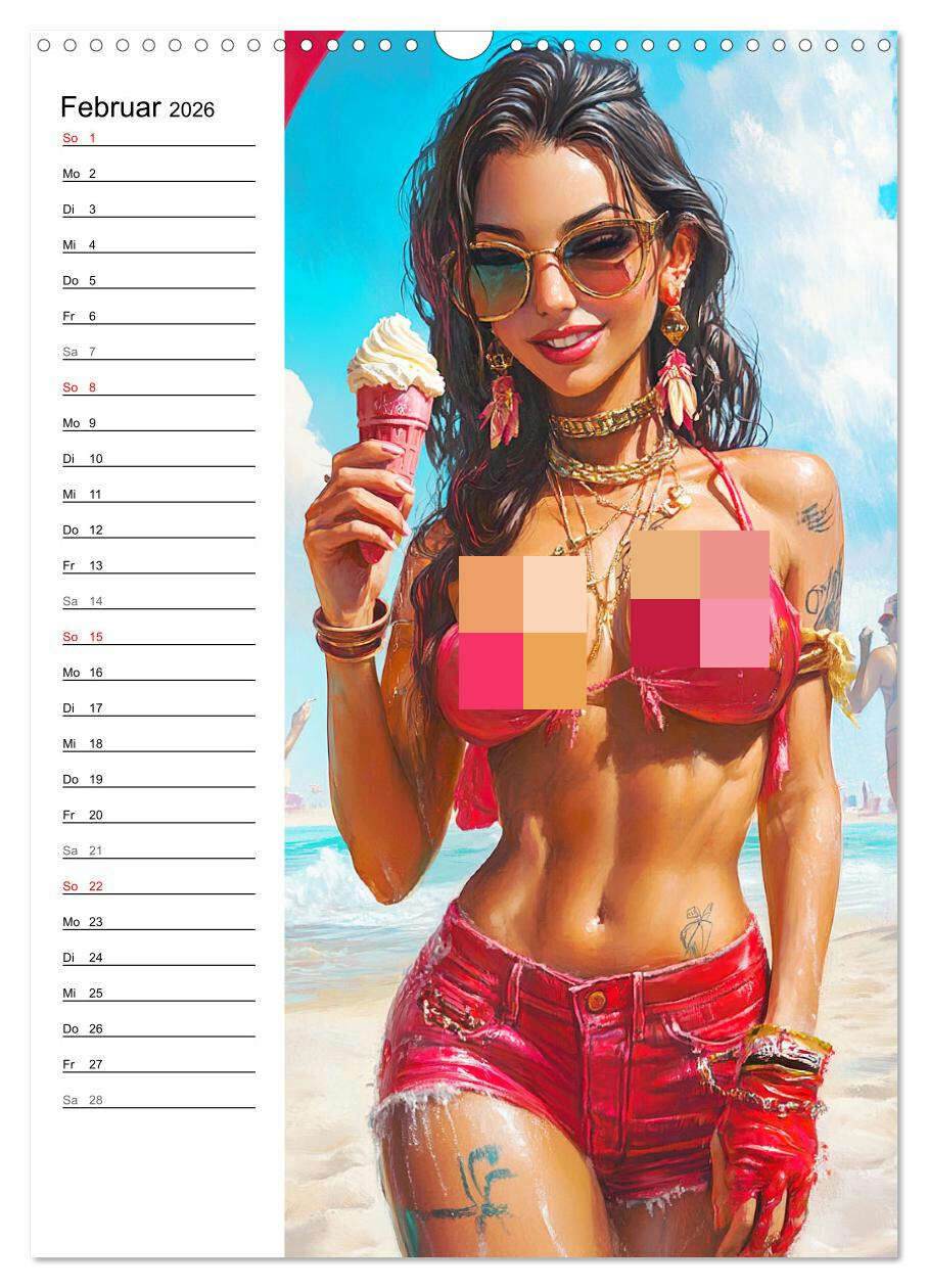 Dieser Kalender fängt die Schönheit und Ausstrahlung selbstbewusster Frauen in sommerlichen Szenerien ein. Jedes Painting zeigt freizügige Girls in der Sonne, am Wasser und umgeben von purer Leichtigkeit. Mit sinnlicher Eleganz verkörpern sie die Wärme und Lei...