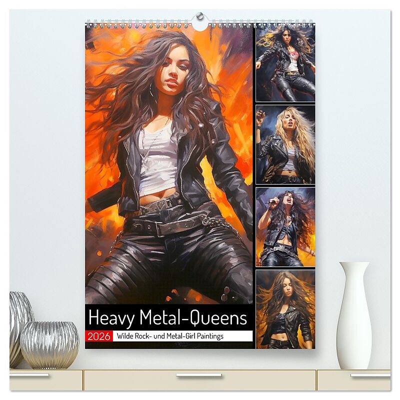 Heavy Metal-Queens. Wilde Rock- und Metal-Girl Paintings (hochwertiger Premium Wandkalender 2026 DIN A2 hoch), Kunstdruck in Hochglanz