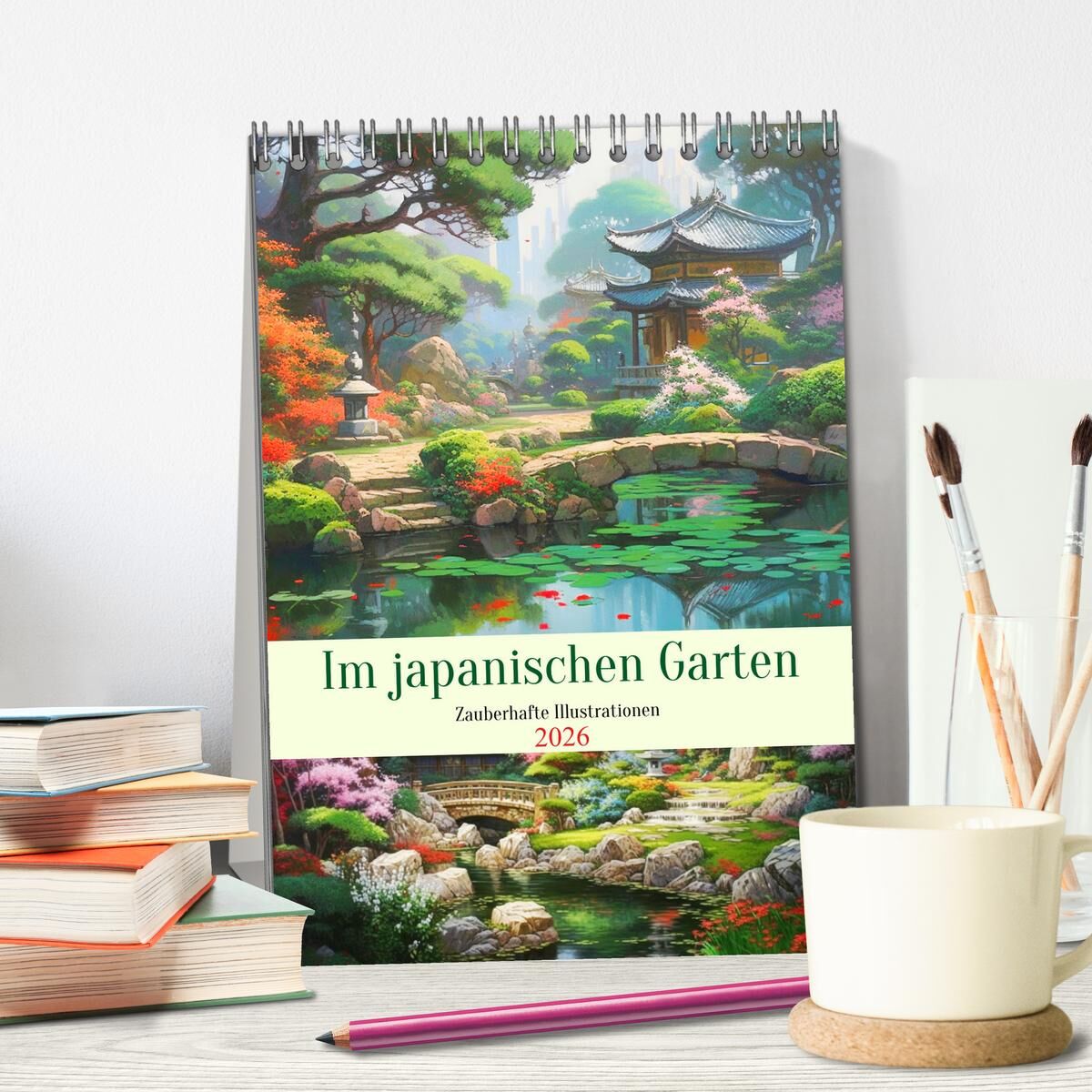 Im japanischen Garten. Zauberhafte Illustrationen (Tischkalender 2026 DIN A5 hoch), CALVENDO Monatskalender