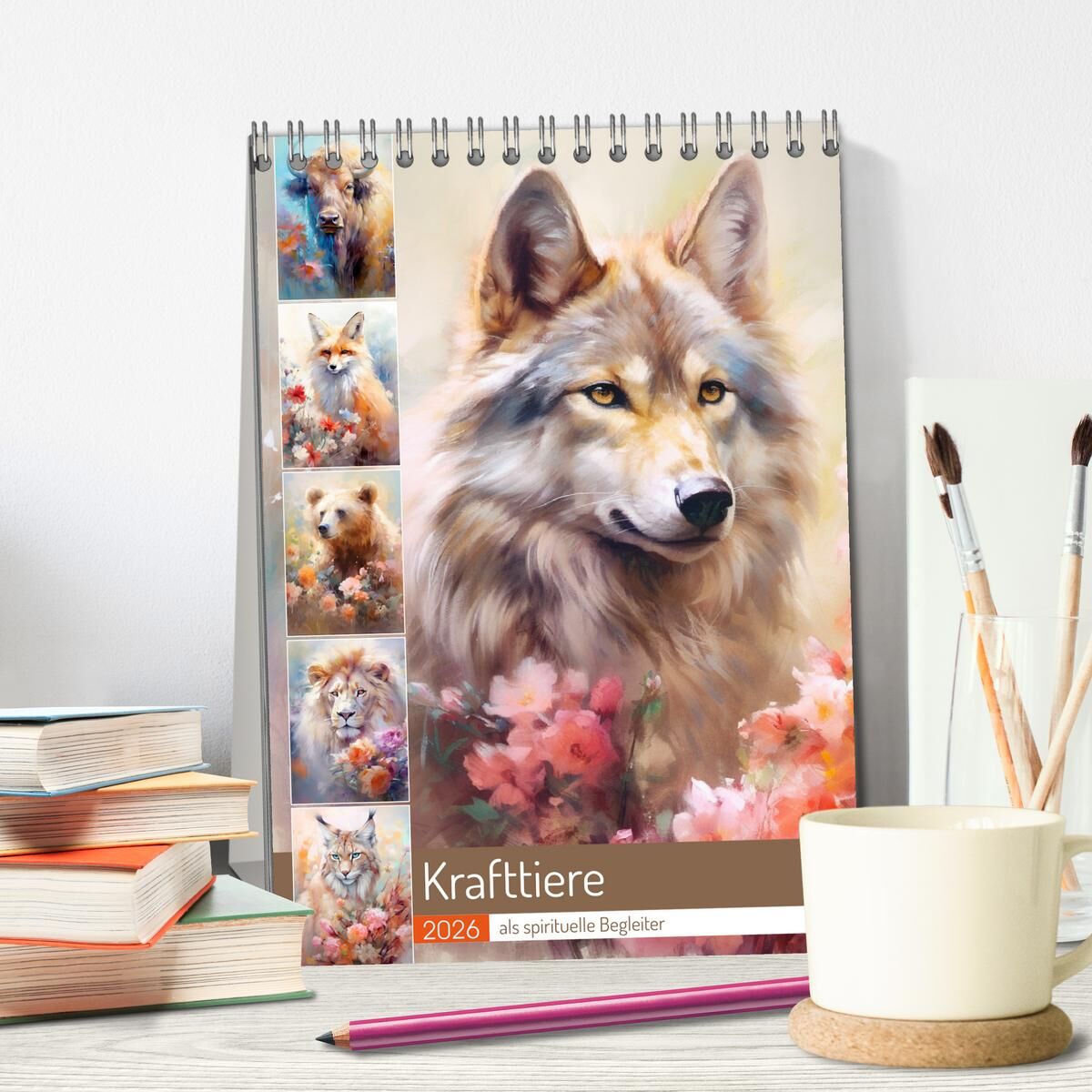 Krafttiere als spirituelle Begleiter (Tischkalender 2026 DIN A5 hoch), CALVENDO Monatskalender