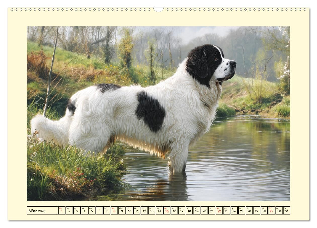 Landseer in der Natur. Majestätische und sanfte Hundeseelen (Wandkalender 2026 DIN A2 quer), CALVENDO Monatskalender