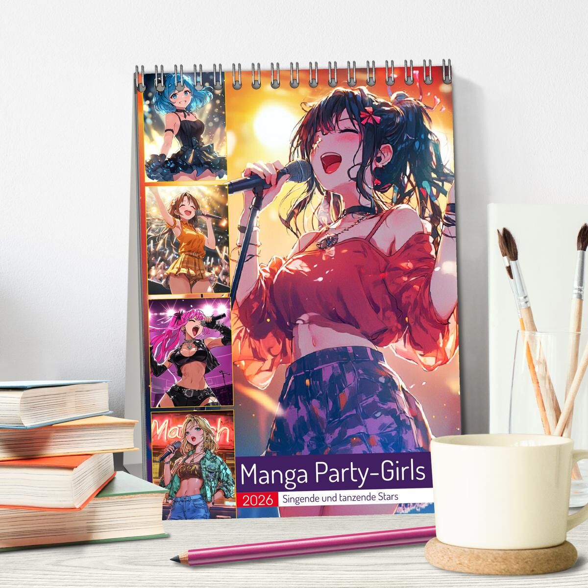 Dieser Kalender bringt die Party ins Leben mit leuchtenden Farben und lebendigen Manga-Mädchen, die entweder auf der Bühne singen oder die Tanzflächen rocken. 12 Bilder, die voller Energie und Lebensfreude stecken, zeigen echte Party-Stimmung in Discos und Clu...