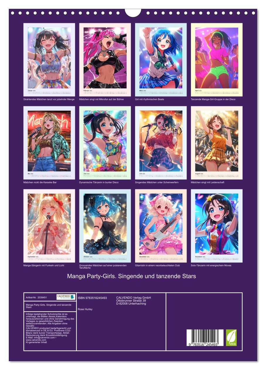 Dieser Kalender bringt die Party ins Leben mit leuchtenden Farben und lebendigen Manga-Mädchen, die entweder auf der Bühne singen oder die Tanzflächen rocken. 12 Bilder, die voller Energie und Lebensfreude stecken, zeigen echte Party-Stimmung in Discos und Clu...