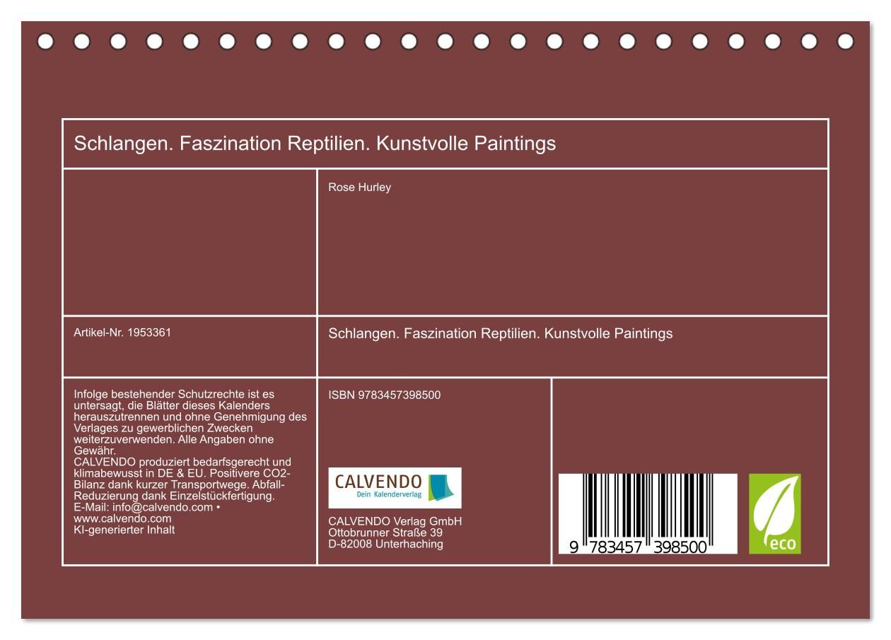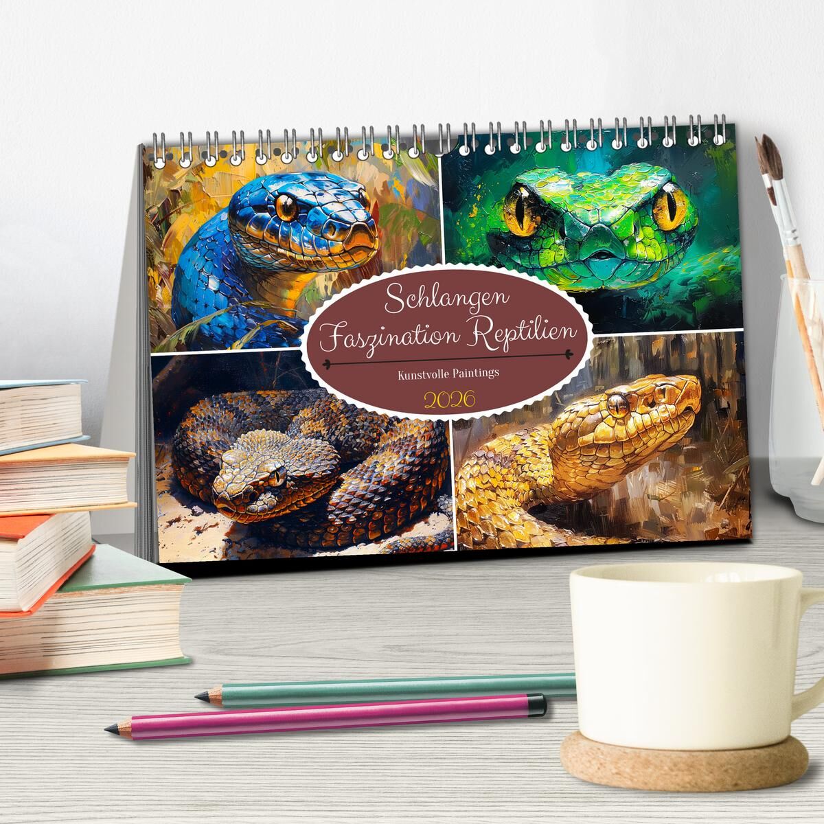Schlangen. Faszination Reptilien. Kunstvolle Paintings (Tischkalender 2026 DIN A5 quer), CALVENDO Monatskalender