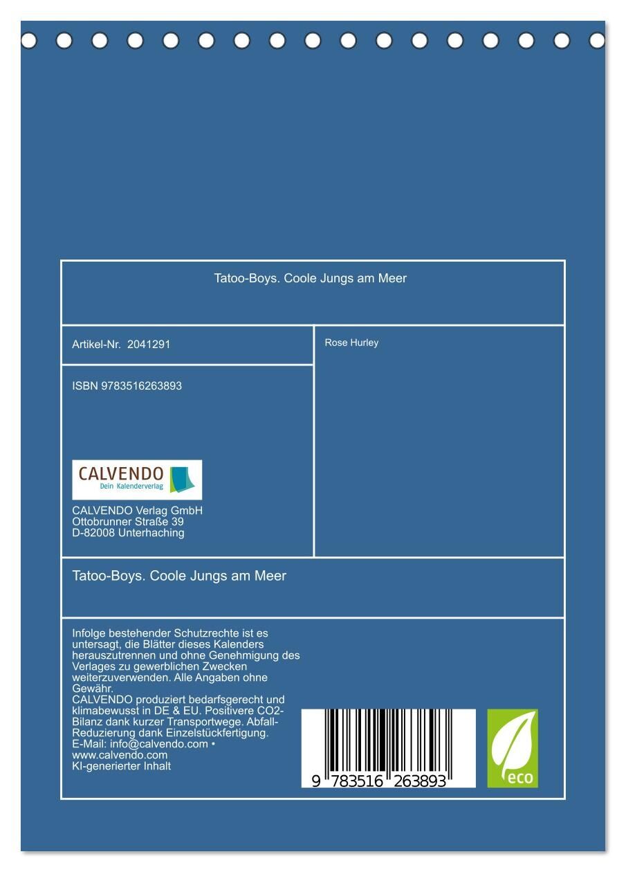 Entdecken Sie mit diesem Tattoo-Boys-Kalender die perfekte Verbindung von Kunst und Körper. Jeder Monat wurde mit Hilfe von KI erstellt und präsentiert einen schönen Mann mit tollen Tätowierungen vor der malerischen Kulisse des Strandes. Diese Illustrationen f...