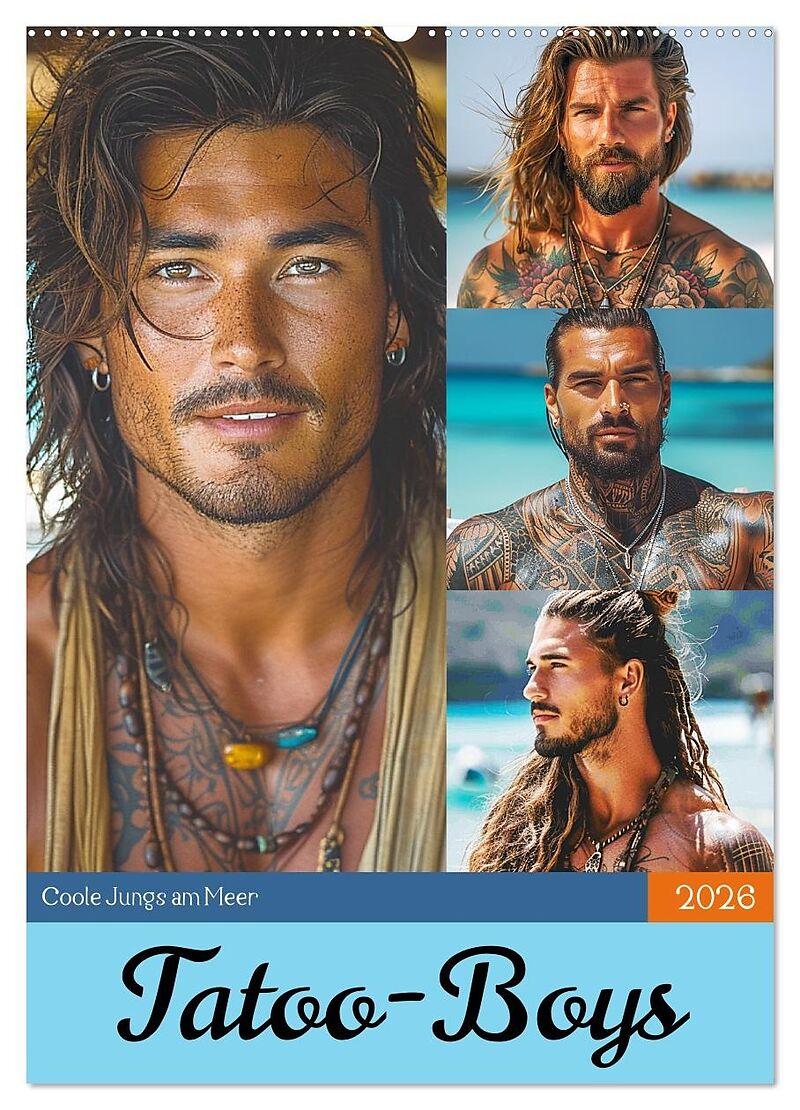 Tattoo-Boys. Coole Jungs am Meer (Wandkalender 2026 DIN A2 hoch), CALVENDO Monatskalender