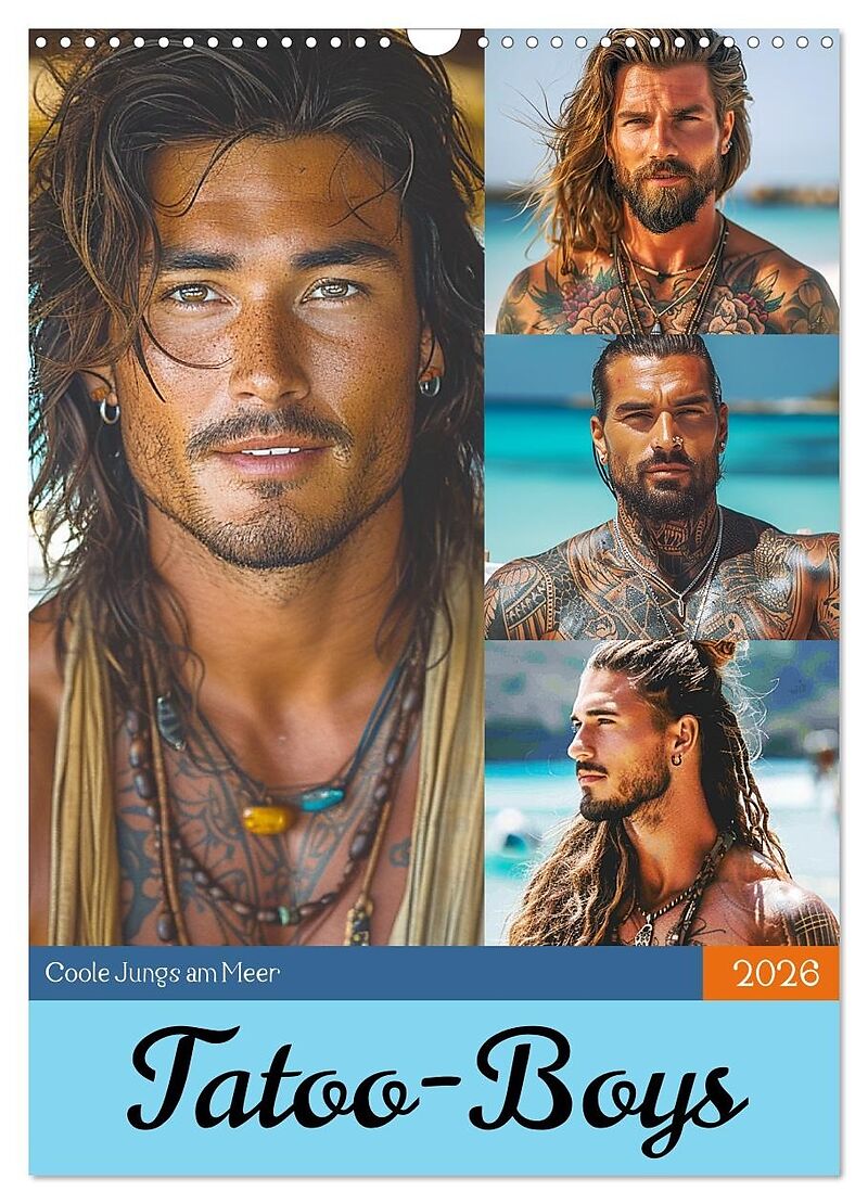 Entdecken Sie mit diesem Tattoo-Boys-Kalender die perfekte Verbindung von Kunst und Körper. Jeder Monat wurde mit Hilfe von KI erstellt und präsentiert einen schönen Mann mit tollen Tätowierungen vor der malerischen Kulisse des Strandes. Diese Illustrationen f...